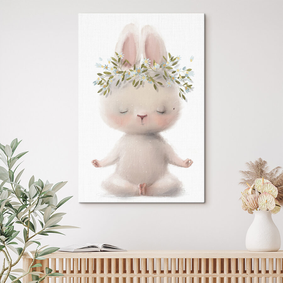Verwelkom serieuze zen vibes met deze charmante canvasprint van een mediterend konijntje. Deze kleine pluizenbol met zijn schattige bloemenkroon voelt als een warme knuffel voor je muur. Perfect voor kinderkamers of elke andere ruimte die een vleugje eigenzinnigheid en rust nodig heeft. Stel je voor, elke keer als je ernaar kijkt, voel je je een beetje lichter en misschien, heel misschien, slaak je een zucht van tevredenheid. Het is niet alleen kunst; het is een herinnering om diep adem te halen en een beetje rust in de chaos te omarmen. Hang het op, hou ervan en laat de schattigheid over je heen komen.