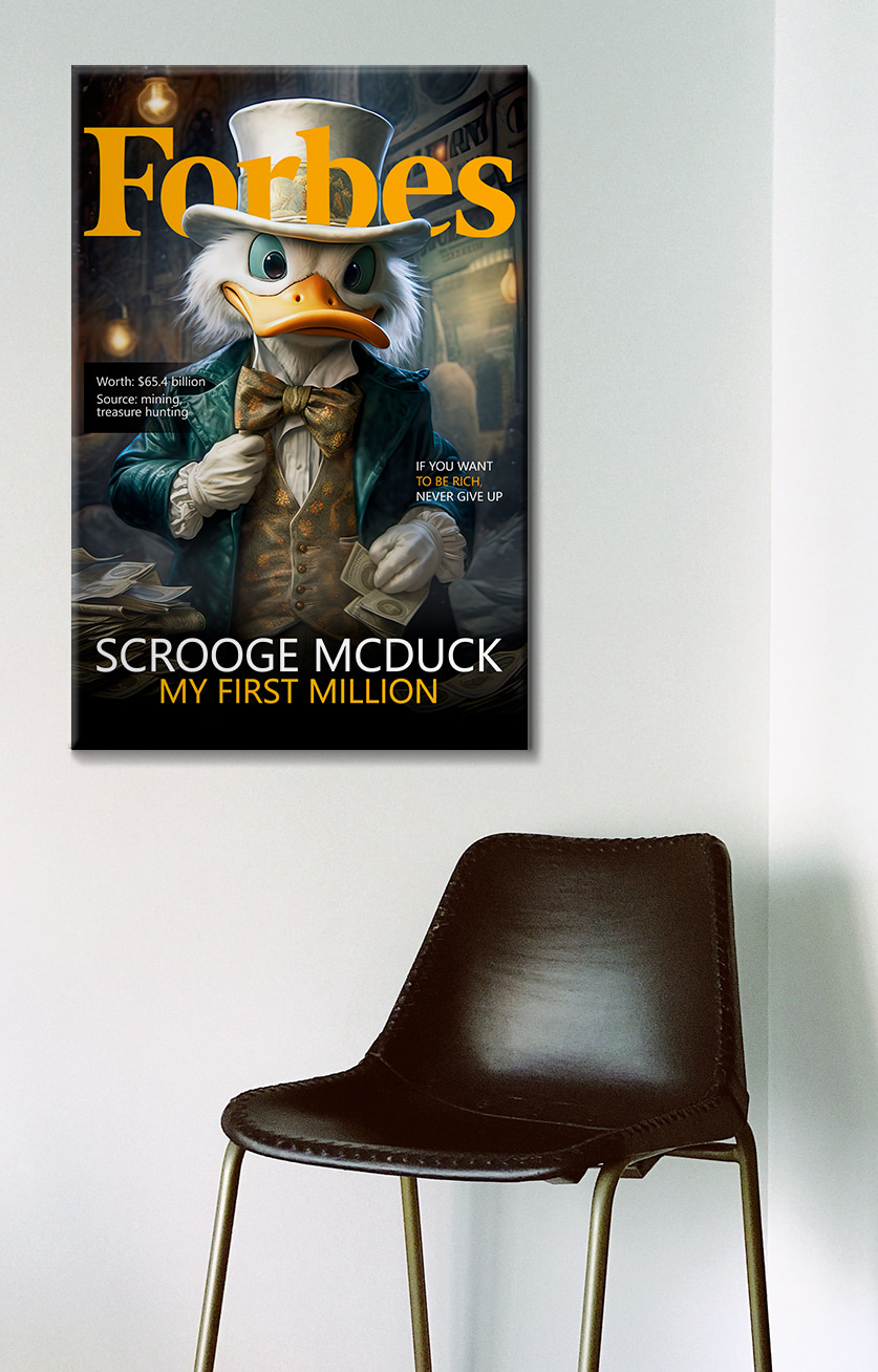 Maak kennis met de canvasprint die een vleugje eigenzinnigheid toevoegt aan elke kamer – een knappe eend in pak die zijn geld telt alsof hij net uit een directievergadering komt. Dit eigenzinnige kunstwerk is perfect voor iedereen die een beetje plezier in zijn inrichting waardeert. Stel je voor dat het boven een gezellige leeshoek of zelfs in een kantoor aan huis hangt en een glimlach en een gesprek opwekt. Met zijn speelse thema is het net een dagelijkse herinnering om het leven niet te serieus te nemen. Perfect voor diegenen die weten dat een beetje lachen – en misschien een beetje ambitie – heel veel kan helpen. Het is tijd om deze stijlvolle gevederde vriend centraal te stellen in jouw ruimte!