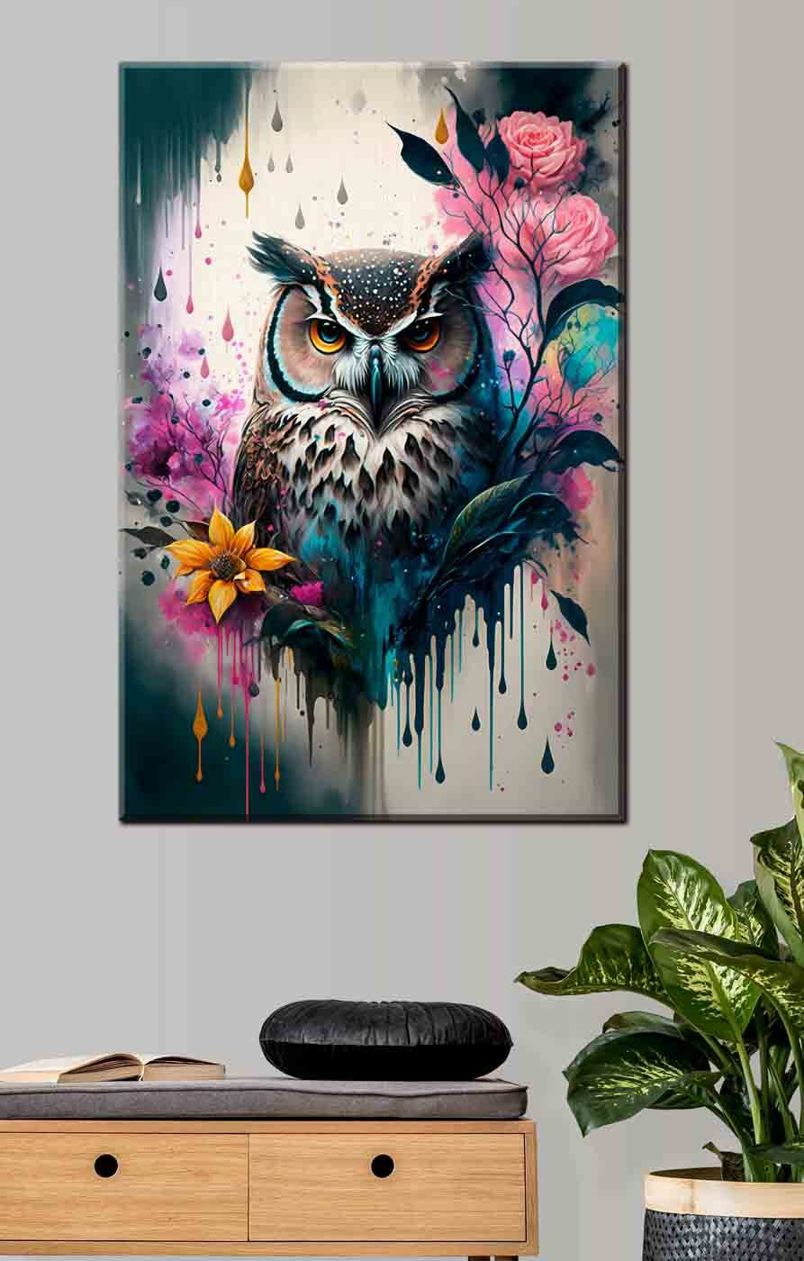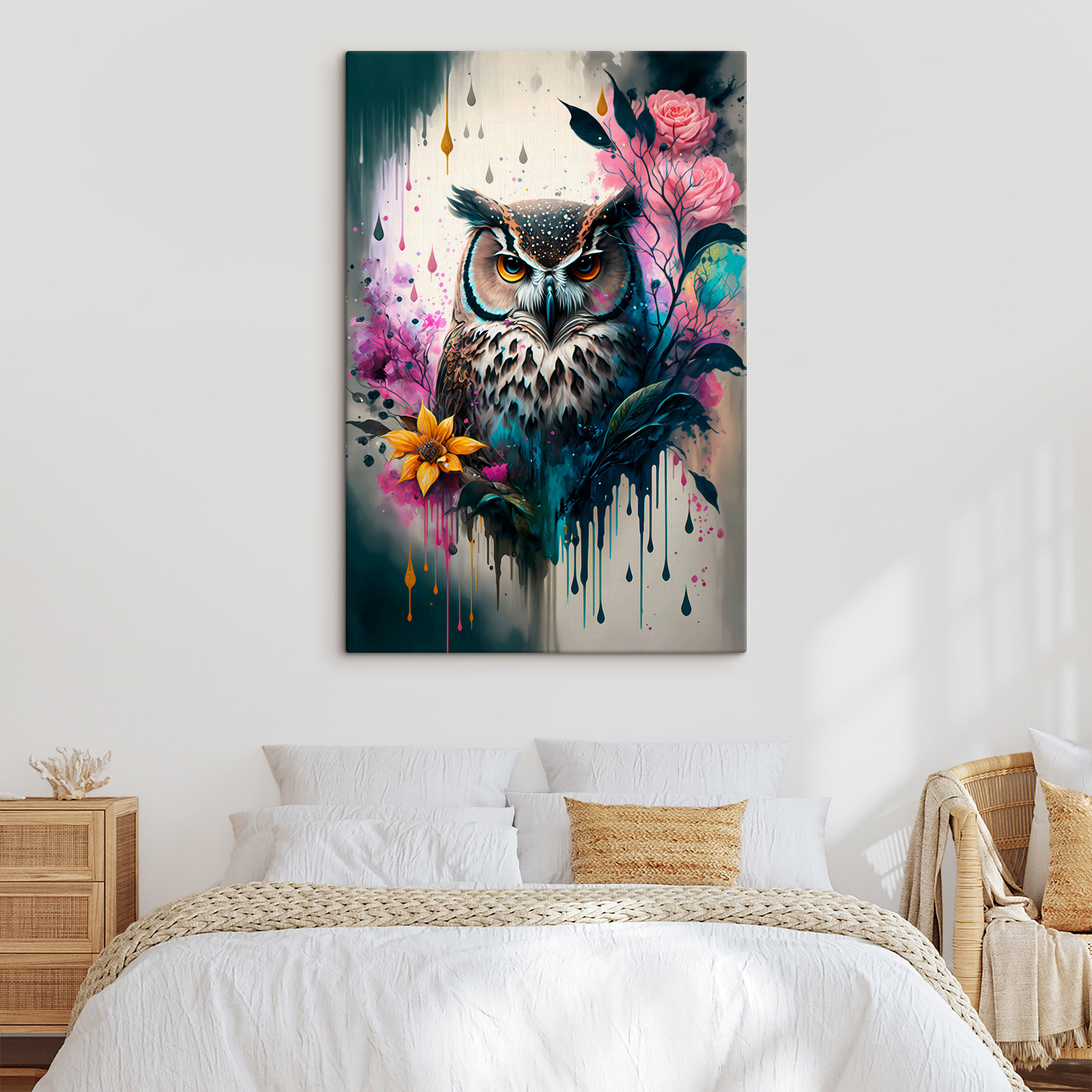 Breng een vleugje charme van de natuur in je interieur met deze levendige canvasprint met een uil omringd door een prachtige explosie van bloemen. Het is alsof Moeder Natuur zelf heeft besloten een kleurrijk feestje te geven! De opvallende uil lijkt over de kamer te waken en stimuleert gesprekken over middernachtelijke avonturen en bosverhalen. Stel je voor dat hij een gezellig hoekje opfleurt of als grillig middelpunt in een woonkamer dient. Dit kunstwerk is perfect voor iedereen die van de wilde kant van het leven houdt en verandert je muren in een canvas van creativiteit en warmte. En wie wist dat een uil er zo fantastisch uit kon zien tussen de bloemen? Er is hier geen tekort aan persoonlijkheid – laat het elke dag een glimlach en een vleugje vreugde inspireren.