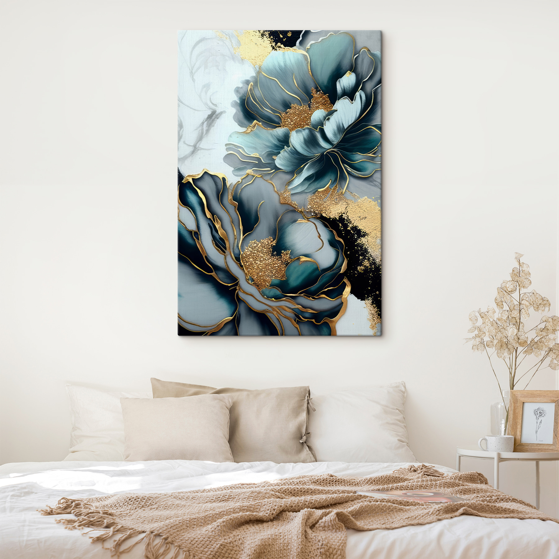 Tover elke muur om in een bloeiend paradijs met deze canvasprint met elegant bloemenkunstwerk. Stel je voor dat je een kamer binnenloopt en je meteen opgefleurd voelt door deze weelderige bloemen met subtiele kleuren die in het oog springen. Het is als een frisse wind in je ruimte, waardoor deze zowel uitnodigend als verfijnd aanvoelt. Of het nu een woonkamer siert of een gezellig leeshoekje opfleurt, dit stuk zal zeker gesprekken op gang brengen. Wie wil er nou niet praten over de prachtige bloemen die lijken te dansen met het leven? Voeg een vleugje natuur toe aan je interieur en laat het zijn schoonheid ontvouwen – net als een boeket dat je nooit wilt laten eindigen. Bovendien is het een lust voor het oog waardoor je die stapel wasgoed die je aanstaart misschien wel vergeet!