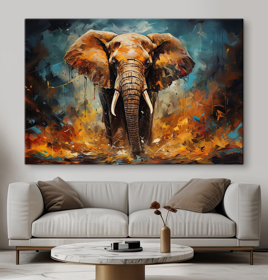 Maak kennis met je nieuwe favoriete canvasprint: een olifant met slagtanden en een vleugje vuil! Het is niet zomaar kunst; het is een statement. Stel je voor dat dit nobele wezen je woonkamer of kantoor domineert en meteen een vleugje wild avontuur toevoegt. De mix van abstracte kleuren laat het knallen als een visuele symfonie. Voel de aardse vibes en de vrije geest alsof de olifant zo van het doek zou kunnen lopen! Perfect voor dierenliefhebbers of mensen die hunkeren naar een beetje exotische chaos. Een echte gespreksstarter, met een vleugje “wow”-factor. Wie wist dat slagtanden zo trendy konden zijn?