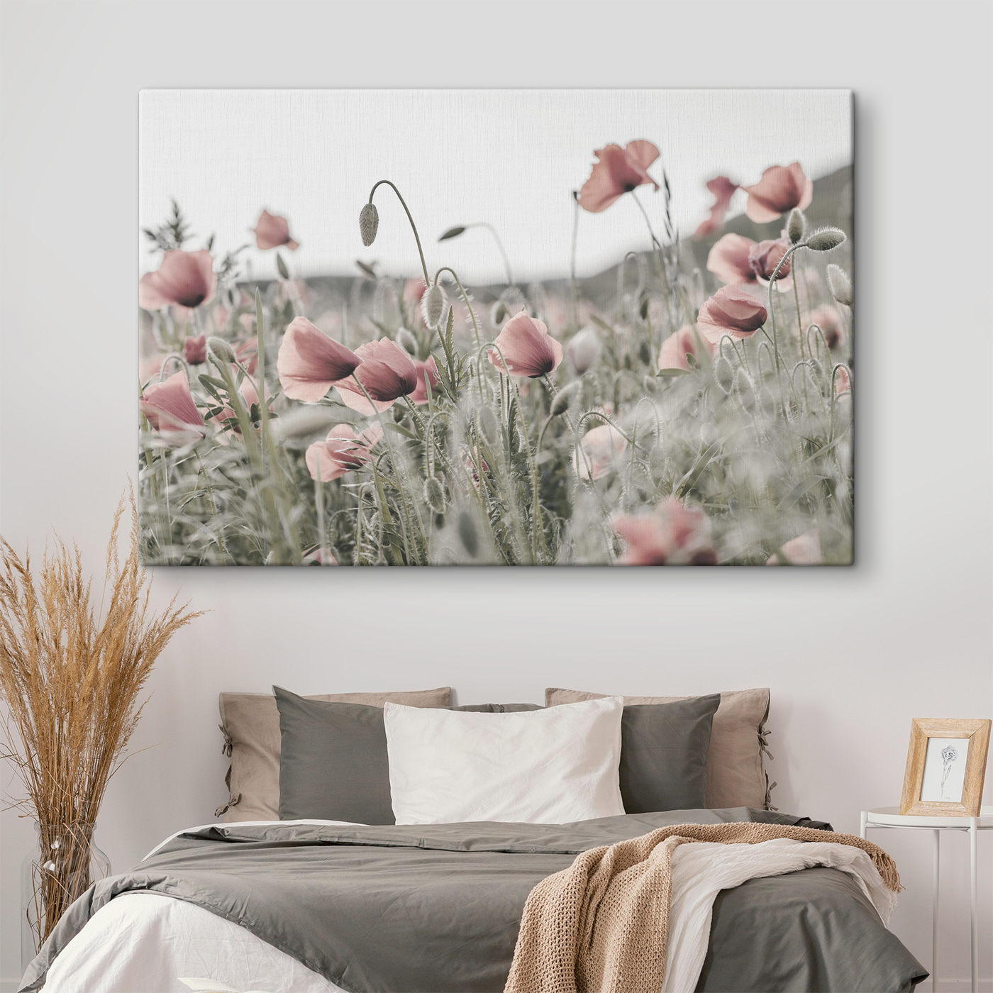Stel je voor dat je door een dromerig veld met delicate roze klaprozen loopt die zachtjes wiegen in de wind – dat is precies de sfeer die deze canvasprint uitstraalt. Het is alsof je een stukje serene weide in je woonkamer hebt. Perfect om een zacht vleugje natuur aan je interieur toe te voegen, met de perfecte balans tussen kalm en levendig. Elke klaproos lijkt bijna levend en nodigt je uit om even stil te staan en te genieten van de kleine momenten. Ideaal voor bloemenliefhebbers of iedereen die een vredig, natuurlijk tintje aan zijn interieur wil geven.