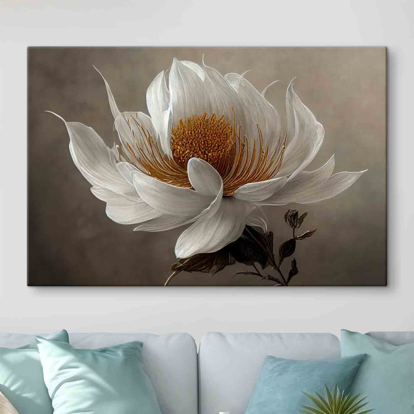 Maak kennis met de prachtige canvasprint die een vleugje charme van de natuur in je interieur brengt. Deze elegante witte bloem in bloei is als een frisse wind aan je muur, perfect voor iedereen die schoonheid in eenvoud waardeert. Stel je voor dat je wakker wordt en begroet wordt door deze delicate bloesem, waarvan de zachte bloemblaadjes je uitnodigen om even stil te staan en adem te halen. Met een achtergrond die rust uitstraalt, voelt het alsof het kleine geheim van de natuur een knus plekje in je huis heeft gevonden. Of het nu in de woonkamer is of in een rustig hoekje, dit stuk zal zeker gesprekken op gang brengen, stemmingen verbeteren en misschien zelfs inspireren tot een beetje dagdromen. Het is niet alleen decor; het is een ervaring die staat te gebeuren.