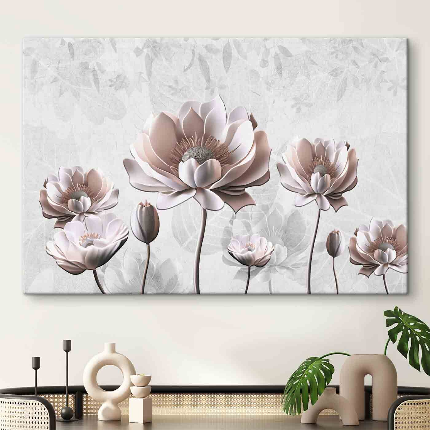“Elegant vormgegeven bloesems in bloei’ hangt niet alleen aan de muur, maar danst daar ook. Stel je voor dat je na een lange dag thuiskomt en deze delicate bloemen je begroeten met een zacht gefluister van de natuur. Perfect voor elke kamer die hunkert naar een vleugje sereniteit. De bloemblaadjes lijken bijna aanraakbaar, nietwaar? Je kunt bijna het flauwste vleugje van hun denkbeeldige geur opvangen, kalmerend en uitnodigend. Het is als een zachte omhelzing van de natuur telkens als je er langs loopt. En hé, heb je een vriend die van unieke decoraties houdt? Ze zullen dit prachtig vinden. Het is niet zomaar kunst, het is een beetje magie op canvas!