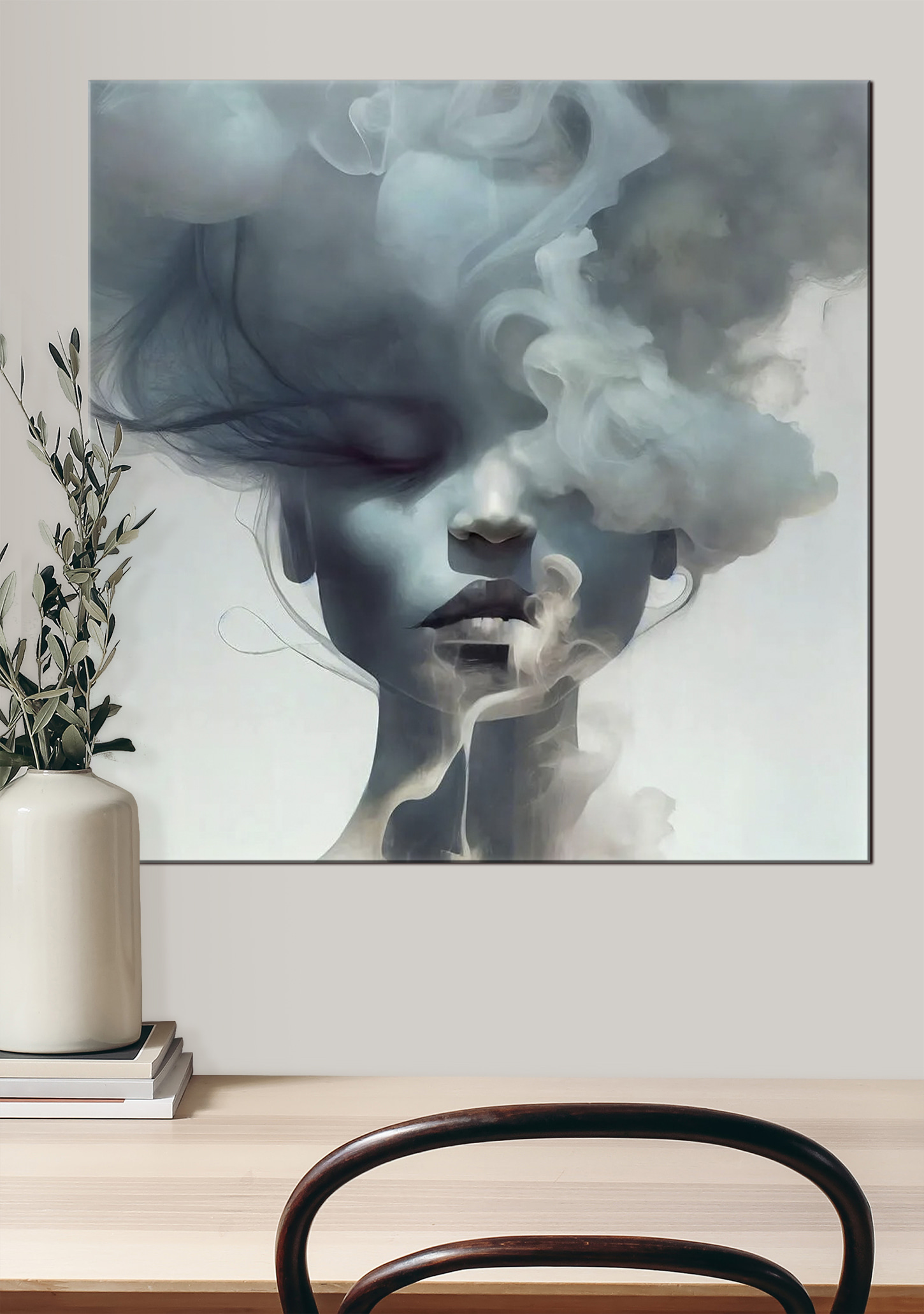 Heb je je ooit afgevraagd hoe mysterie aanvoelt? Deze canvasprint “Mysterious Face Enveloped in Smoke” geeft het perfect weer. Stel je voor dat dit kunstwerk in je woonkamer hangt, of misschien zelfs in je slaapkamer. Het gezicht gehuld in rook heeft een dromerige, bijna spookachtige kwaliteit – het is alsof je in een mistig droomlandschap stapt elke keer als je ernaar kijkt. Je kunt niet anders dan verdwalen in de rookslierten en proberen het verhaal achter het gezicht te ontrafelen. Misschien is het een beetje griezelig, maar op een goede manier – alsof je naar een spannende film kijkt die je op het puntje van je stoel houdt. Perfect voor iedereen die houdt van een beetje intrige in hun inrichting!