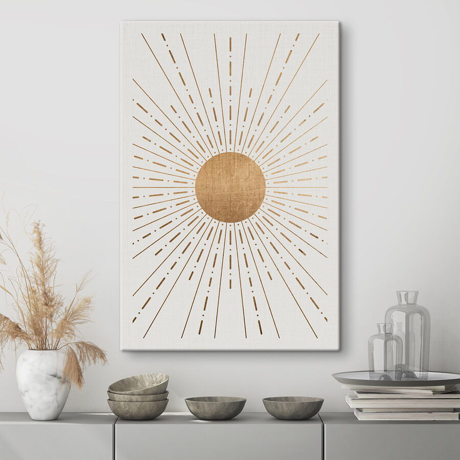 Fleur elke kamer op met deze levendige canvasprint met een stralend zonnestraalontwerp. Stel je eens voor dat je een ruimte binnenloopt waar de muren lijken te gloeien van de warmte en energie die je elke keer dat je er naar kijkt blij maakt. Dit stuk hangt er niet alleen, het nodigt uit tot gesprekken en inspireert tot glimlachen. Perfect om een boho touch toe te voegen, het past bij alles van een gezellige leeshoek tot een levendige woonkamer. Stel je voor dat je vrienden ontvangt en dat hun ogen afdwalen naar dit unieke kunstwerk – het zal zeker een heerlijke afleiding zijn. Verander die saaie muur in een uitbarsting van zonneschijn!