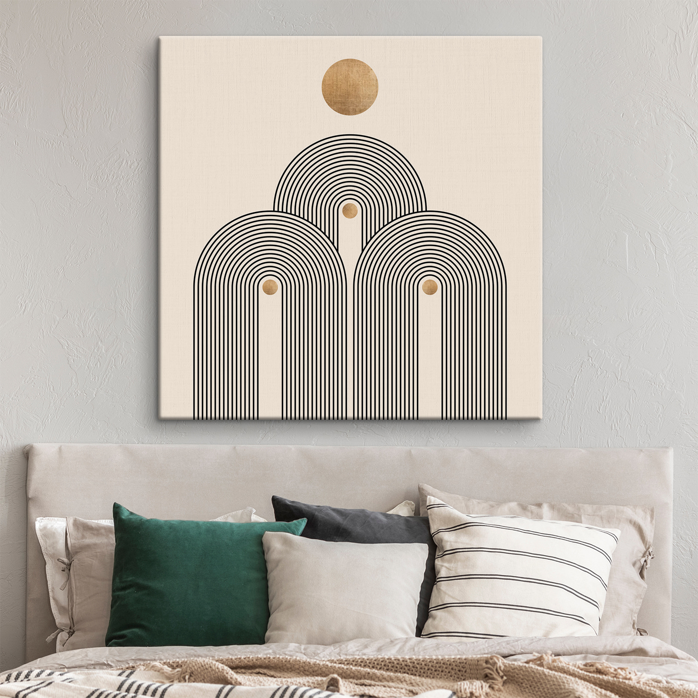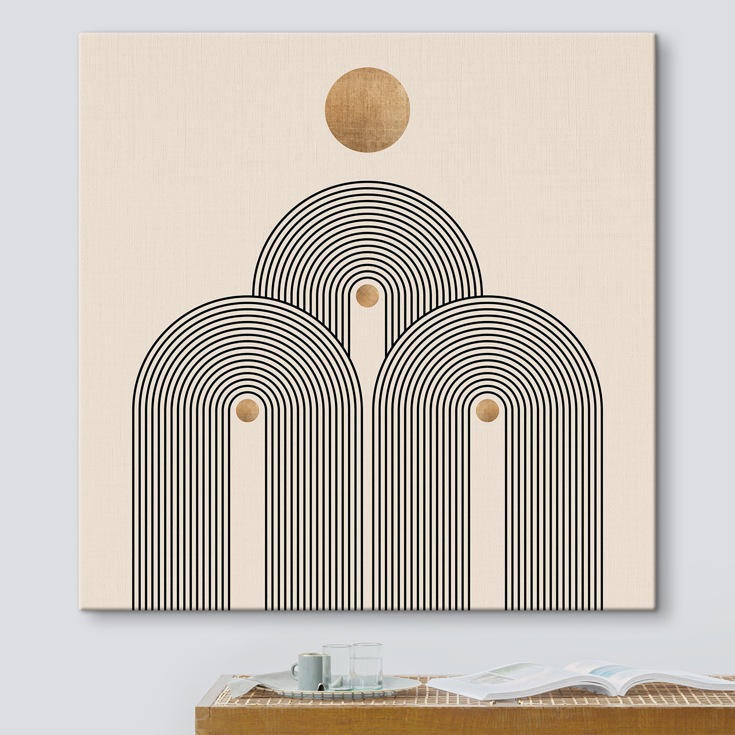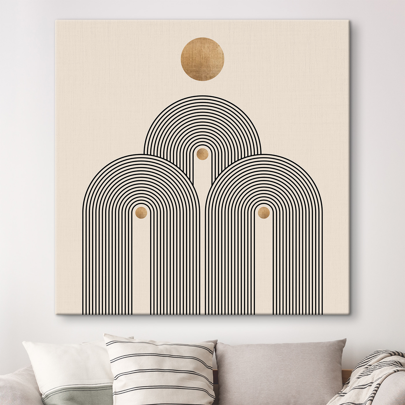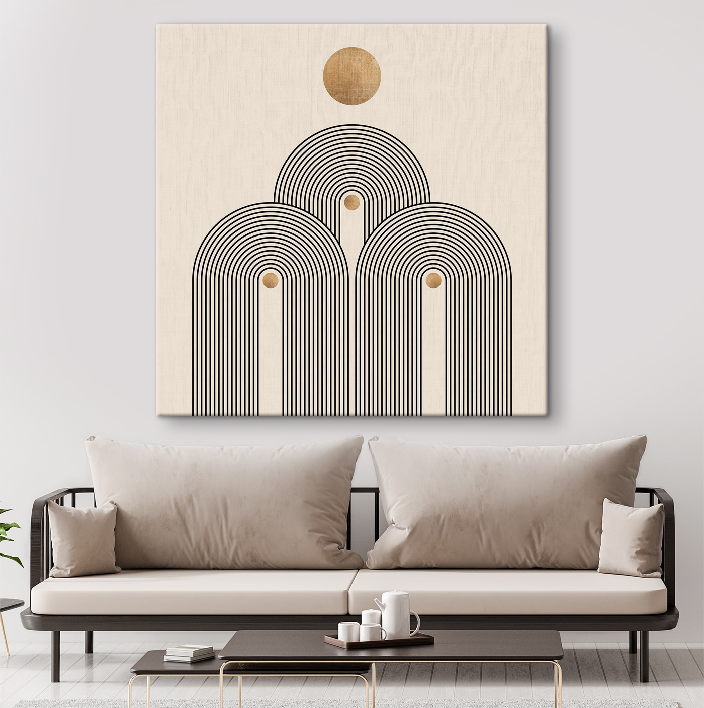 Fleur elke muur op met deze canvasprint met een speels cirkelvormig ontwerp omlijst door krachtige zwarte lijnen. Het lijkt een beetje op het moderne kunstwerk dat je laat nadenken over de grote vragen van het leven, terwijl je stiekem gewoon een kop koffie wilt pakken. De neutrale achtergrond laat het ontwerp knallen, waardoor het perfect past in een gezellige hoek of zelfs in een levendige woonkamer. Stel je voor dat je met vrienden onder de charme van de koffie zit te kletsen, of dat je op een rustig moment even tot rust komt en je gedachten laat leiden door het ritme. Gewoon een eenvoudige, boeiende manier om je ruimte op te fleuren!
