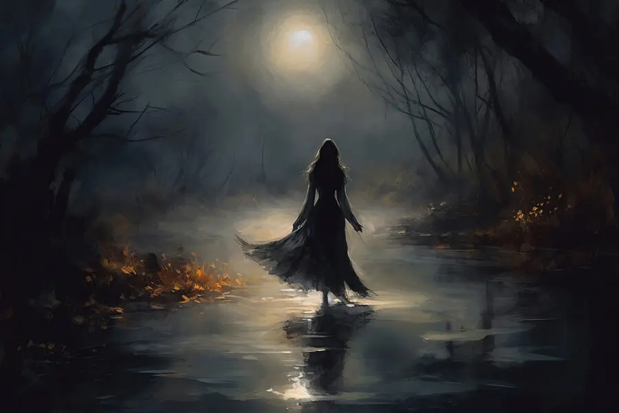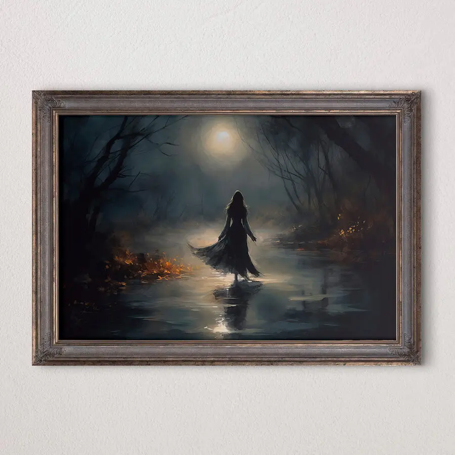 Stel je voor dat je een mysterieus bos binnenstapt, met maanlicht dat door verwrongen takken sijpelt – het is net de scène waarin je eindelijk de plotwending in een film ontdekt. Dit doek, met daarop een vrouw die over een schaduwrijk pad dwaalt, voegt een vleugje intrige toe aan elke ruimte. Perfect om diepe gesprekken op gang te brengen of gewoon om bij weg te dromen. Het is niet alleen kunst; het is een verhaal dat wacht om zich te ontvouwen! Drink een kopje thee en laat je meevoeren op een mentaal avontuur. Sereniteit ontmoet spanning – erg cool, toch?