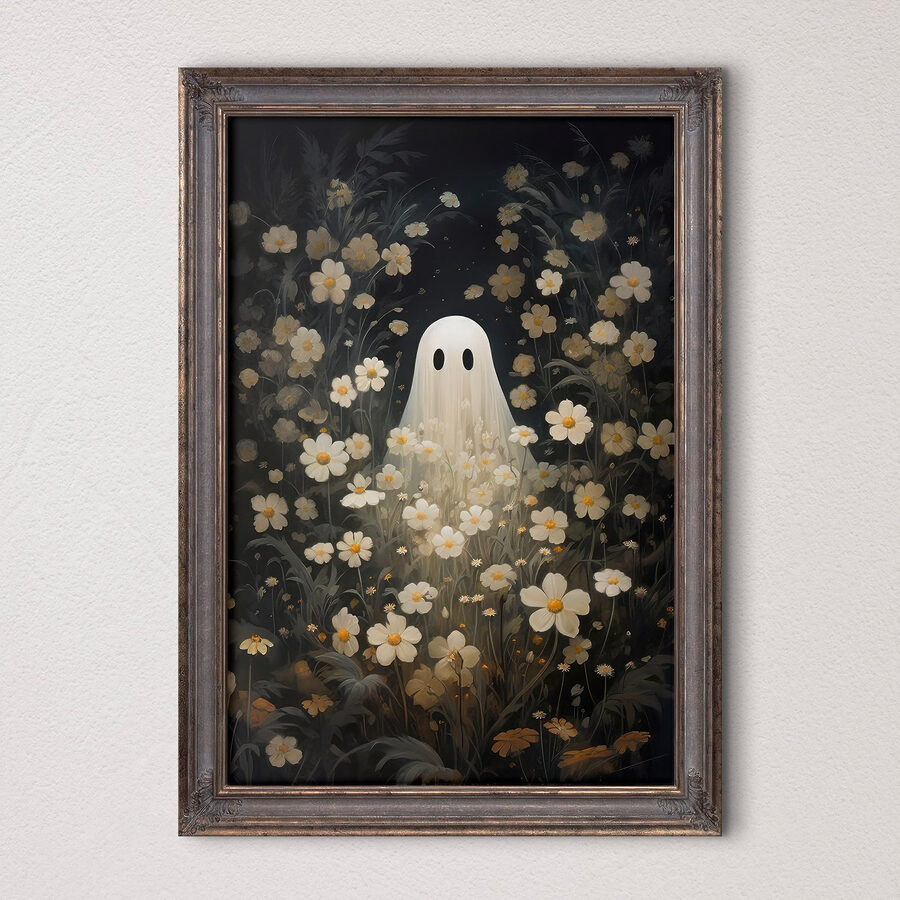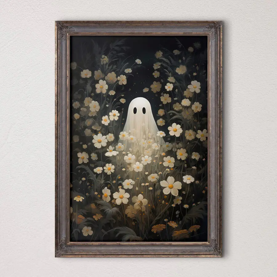 Duik in de grillige wereld van “Ghost in a Field of Flowers”. Dit doek mengt een vleugje mysterie met een boeket van zachte, bloeiende schoonheid. Stel je deze charmante spookachtige bezoeker voor, rondhangend tussen de lieflijke bloemen – het is als een vriendelijk spookverhaal geschreven in waterverf. Het is perfect voor elke ruimte die een unieke oppepper nodig heeft, of waar een conversatiestarter ontbreekt. Voel de speelse griezeligheid en omarm het mysterie, alsof je op een geheime tuin met een onverwachte gast bent gestuit.