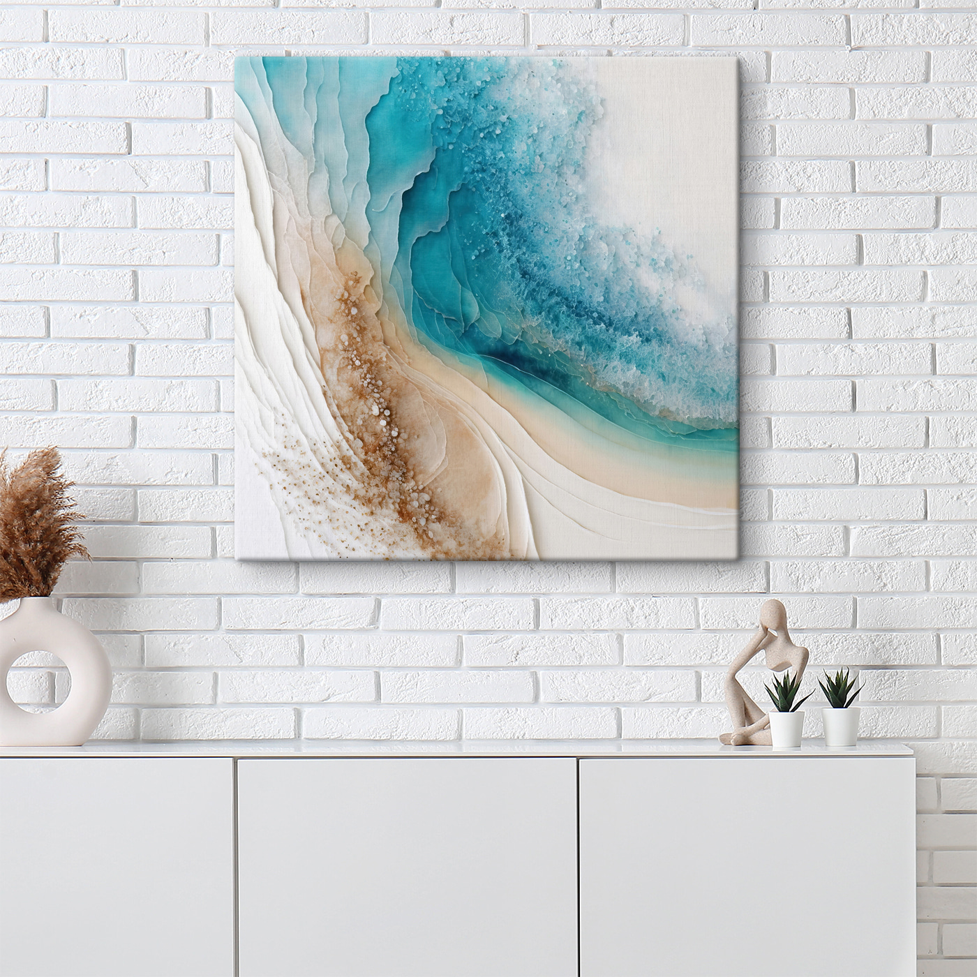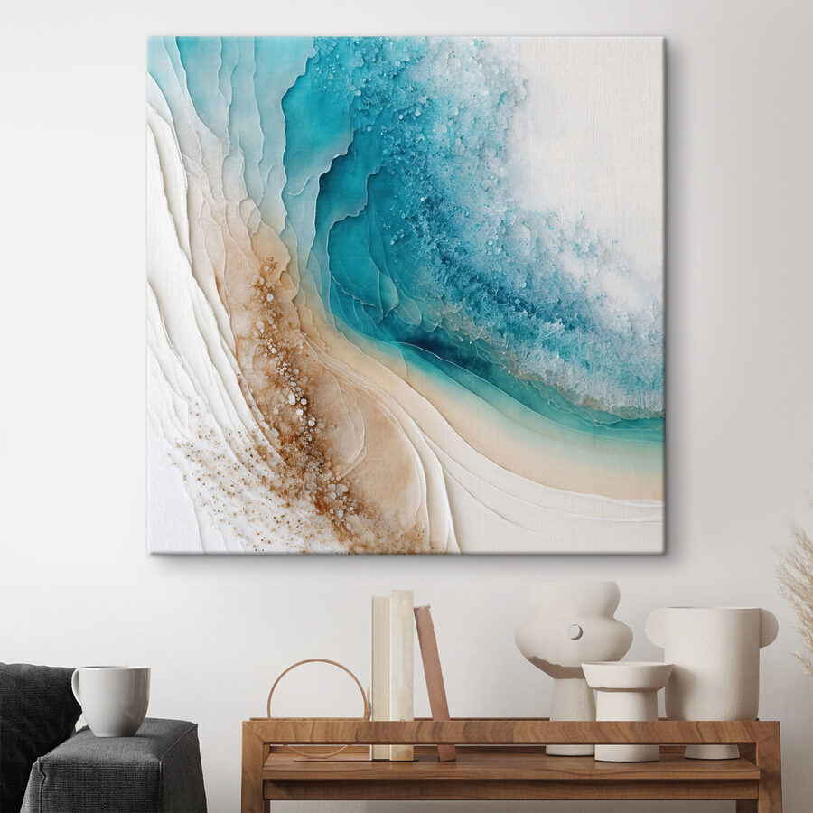 Ooit de magie gevoeld van golven die dansen op zandstranden? Deze print geeft precies die sfeer weer! Met de perfecte naam “Golven mengen zich met zanderige texturen” is het net een vakantie aan je muur. Je kunt het zachte gekletter van de branding bijna horen en de zandkorrels tussen je tenen voelen. Het behoort tot de categorieën “Zee en strand” en “Populaire canvaskunst” – geen verrassingen, toch? Stel je voor dat je je oprolt met een gezellig kleedje, naar dit dromerige kunstwerk kijkt en je meteen ontspannen voelt. Het is als een mini-strandontsnapping zonder je huis te verlaten.