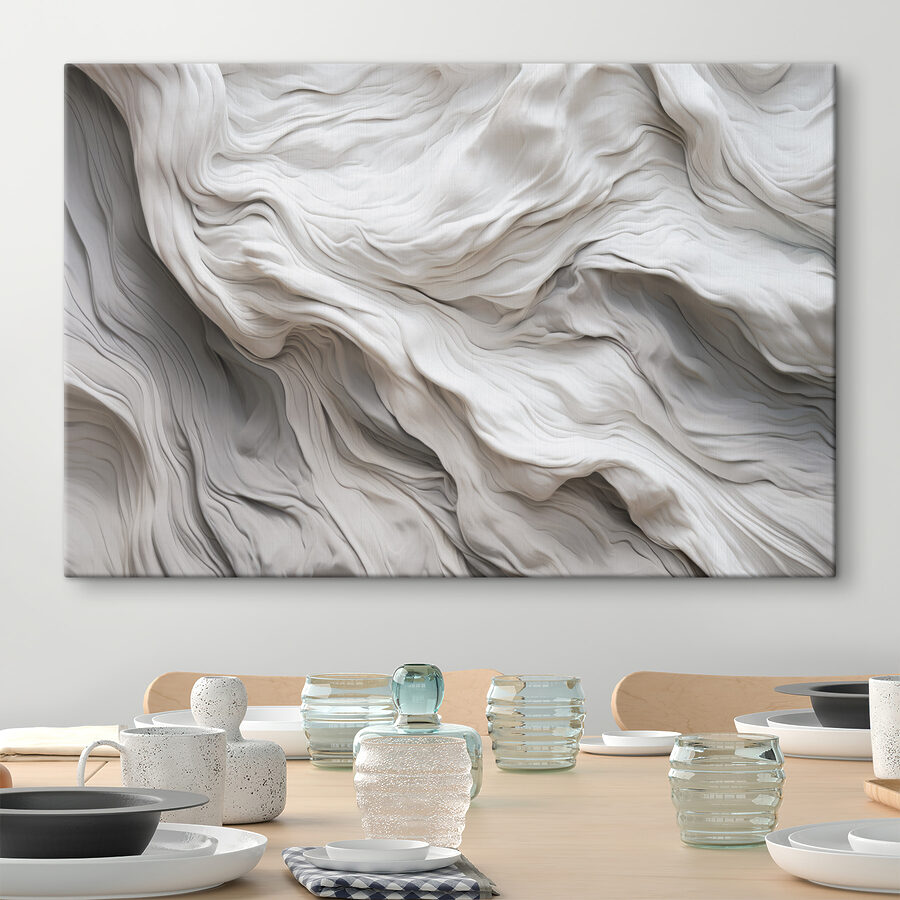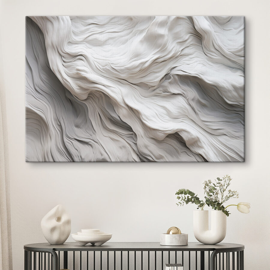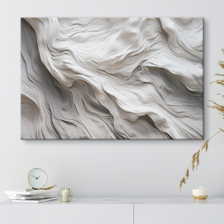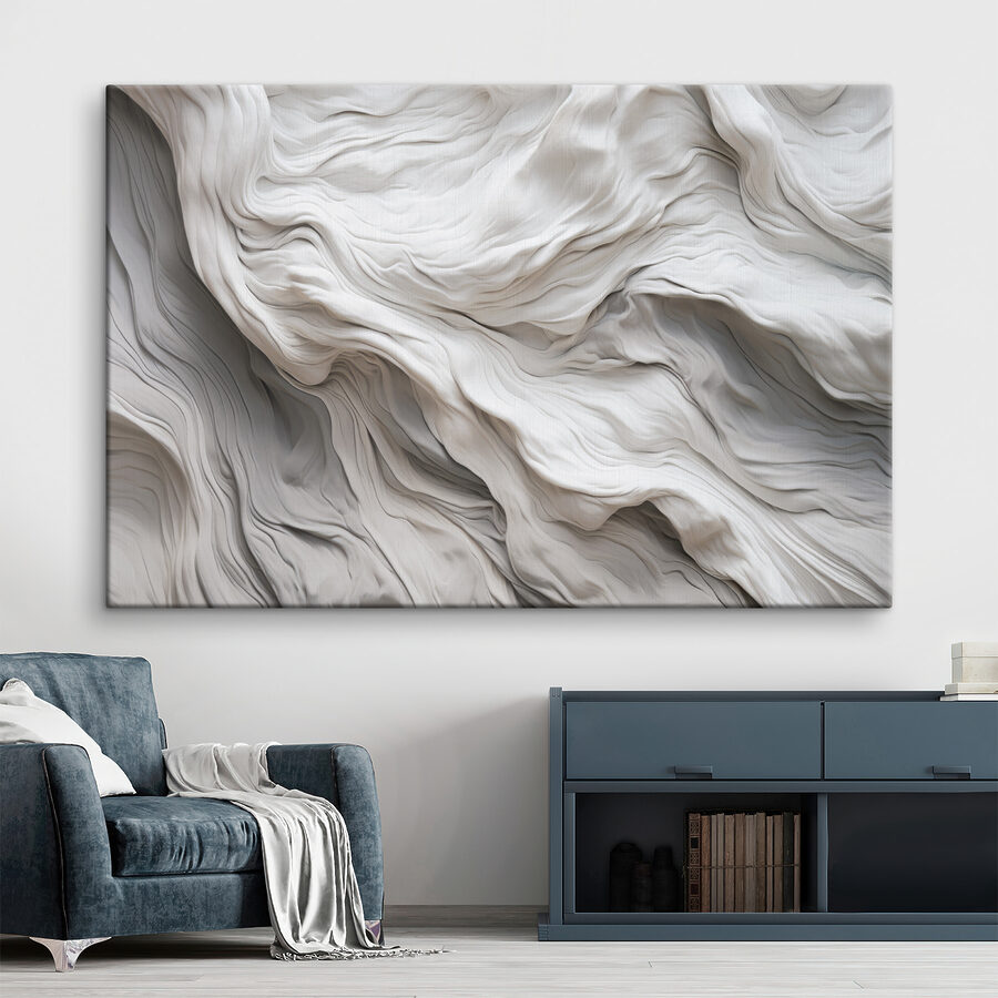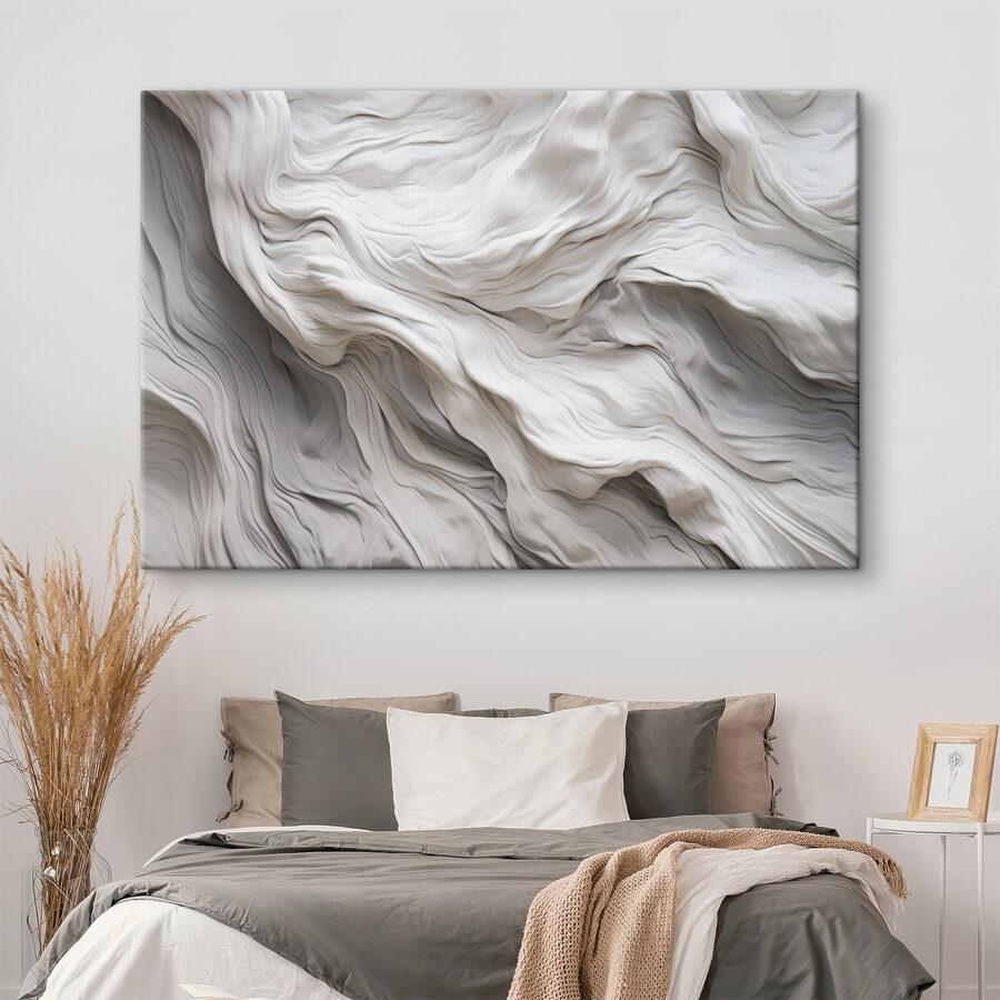 Dit vloeiende stofachtige abstracte patroon geeft een sfeer die zowel gezellig als verfijnd aanvoelt. Stel je voor dat je een kamer binnenloopt en begroet wordt door de zachte golven en zachte rondingen – het is bijna een knuffel voor je muren. Perfect om een saai hoekje op te fleuren of een vleugje intrige toe te voegen boven die perfect geplaatste bank.