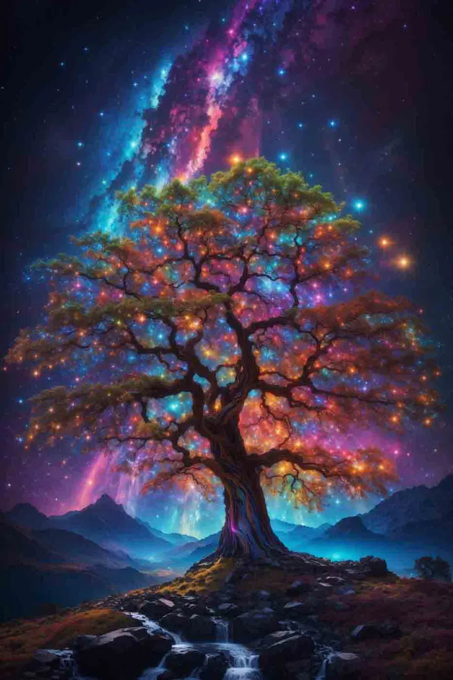 Breng een vleugje verwondering in elke kamer met de Canvas Print van de Boom met Kleurrijke Lampjes. Dit betoverende stuk transformeert de eeuwenoude boom in een magisch schouwspel, barstensvol levendige tinten die dansen als vuurvliegjes tegen een nachtelijke hemel. Stel je de gesprekken eens voor die dit zal ontketenen – vriendelijke debatten over de vraag of de boom thuishoort in een sprookje of in een droom. Perfect boven een gezellige bank of in een leeshoekje, deze kunst nodigt je uit om even stil te staan en na te denken. Het is alsof de natuur een uitstapje heeft gemaakt naar een festival en een ansichtkaart heeft meegenomen voor aan je muur. Wie zou daar niet om glimlachen?
