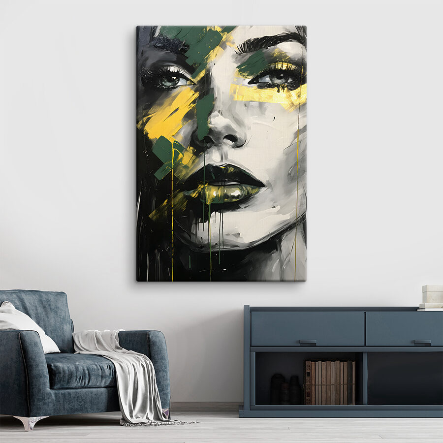 Verander je muur in een conversatiestarter met deze opvallende canvasprint van een vrouwengezicht. Het heeft de perfecte mix van felle kleuren en zachte trekken, waardoor iedereen wordt uitgenodigd om een kijkje te nemen. Stel je voor dat het in een gezellige woonkamer of een creatieve studio hangt en een intrigerende sfeer uitstraalt. Het vleugje groen en geel geeft een speels maar stemmig gevoel, net alsof je moet kiezen tussen uitgaan of thuisblijven met een goed boek. Dit kunstwerk decoreert niet alleen, het wakkert gevoelens en gedachten aan, waardoor het een must-have is voor iedereen die van een unieke inrichting houdt. Perfect voor iedereen die van een beetje extra’s houdt!