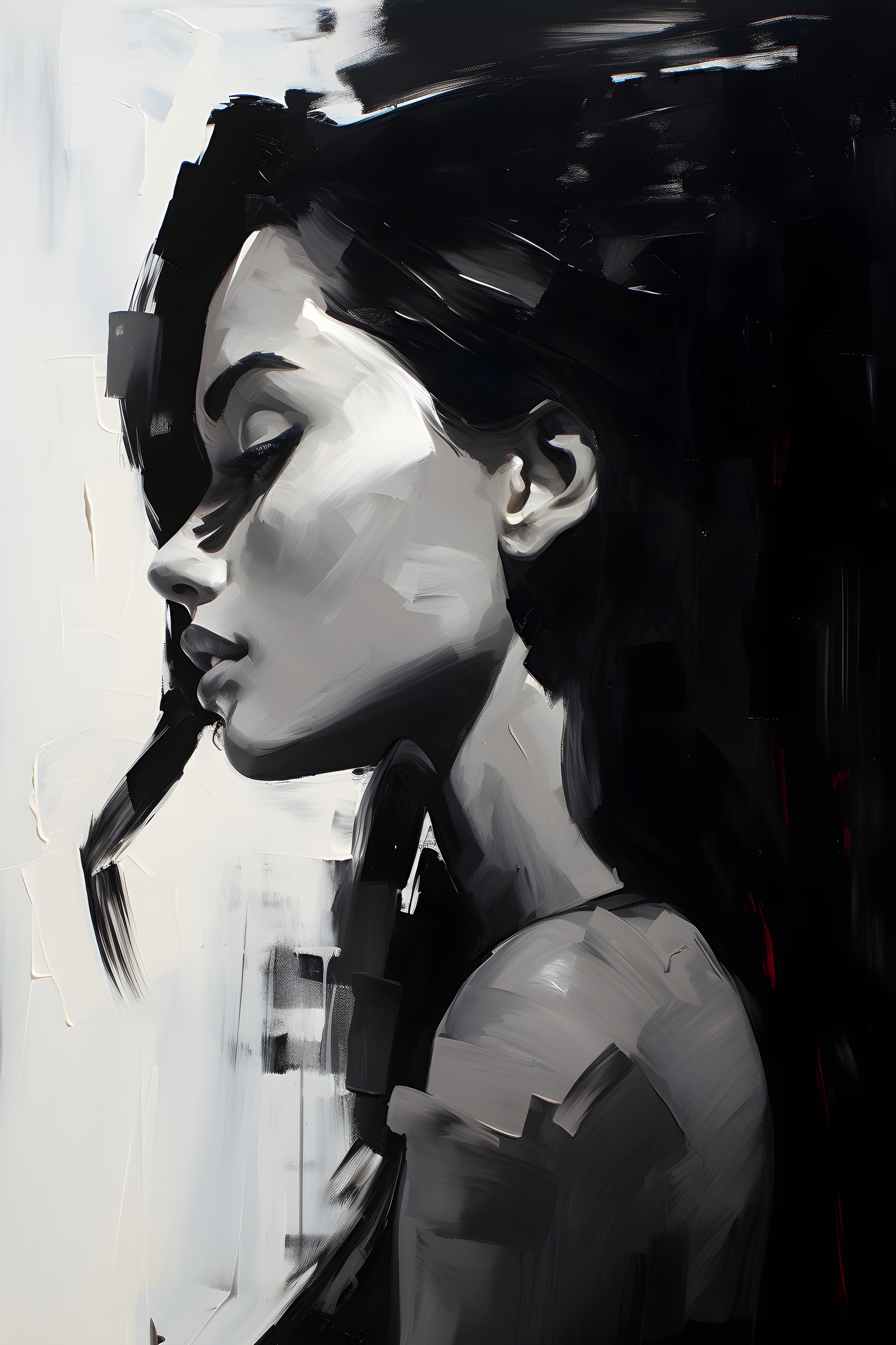 Deze prachtige canvasprint legt de essentie van een vrouw vast op een manier die bijna dromerig aanvoelt. Met gedurfde penseelstreken en een opvallend contrast brengt het een gevoel van mysterie in elke kamer. Stel je voor dat je dit werk in een gezellige leeshoek hangt, waar het aanzet tot dagdromen en gesprekken. Het heeft een moeiteloze uitstraling, waardoor het perfect is voor een relaxte woonruimte. Vrienden kunnen even stilstaan en nadenken over de betekenis of misschien gewoon genieten van de esthetische charme. Het is als een stille metgezel – altijd aanwezig, gevoelens en gedachten oproepend zonder een woord te zeggen. Perfect voor mensen die houden van kunst die een verhaal vertelt.