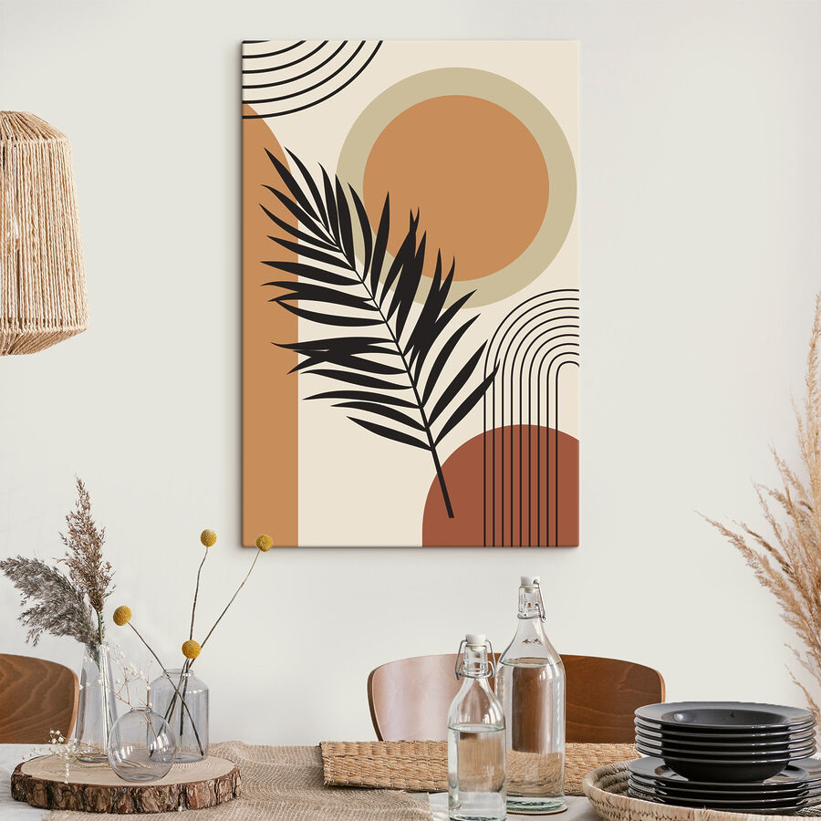 Met deze canvasprint haal je een vleugje eigenzinnigheid uit de natuur in huis! Stel je een blad voor dat nonchalant danst onder zachte bogen en cirkels – het is als een kleine visuele haiku. Perfect voor de dagen dat je even aan de chaos moet ontsnappen en gewoon… moet ademen. Hang het in je woonkamer en laat het je dagelijkse herinnering zijn dat het leven niet altijd logisch hoeft te zijn om mooi te zijn. Bovendien is het speelse ontwerp een leuke verrassing voor elke gast die in zijn buurt komt. Voeg een beetje abstracte magie toe aan je interieur – want waarom niet?