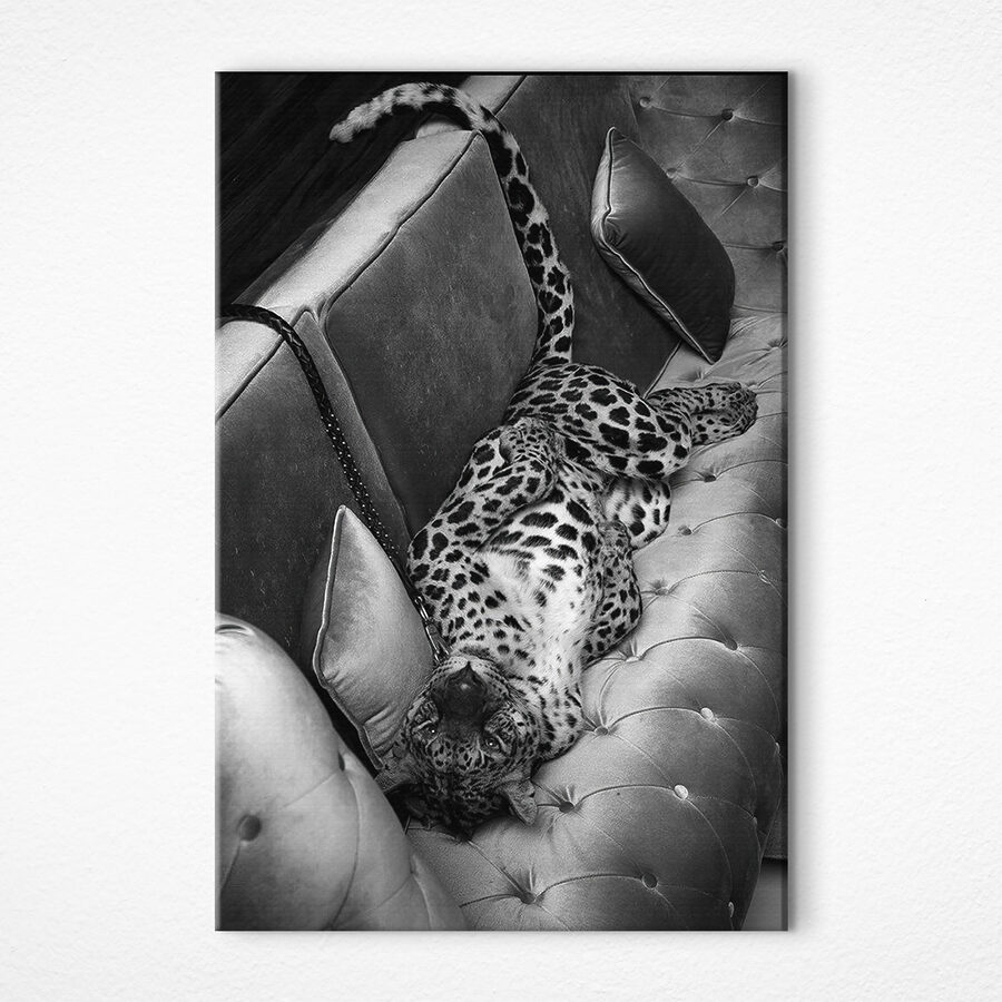 Stel je een luipaard voor dat nonchalant op de bank in je woonkamer ligt – zonder de klauwen en de jachtbekwaamheid. Deze zwart-witte canvas print is pure elegantie met een vleugje wilde charme. Perfect voor dierenliefhebbers of voor diegenen die gewoon van een goed kattendutje houden. De details zijn prachtig en geven de essentie van een luie middag weer. Het is als een vleugje jungle met een stijlvolle twist. Zie het al voor je boven je bank, met een geraffineerde en stijlvolle uitstraling. Een echte gespreksstarter!