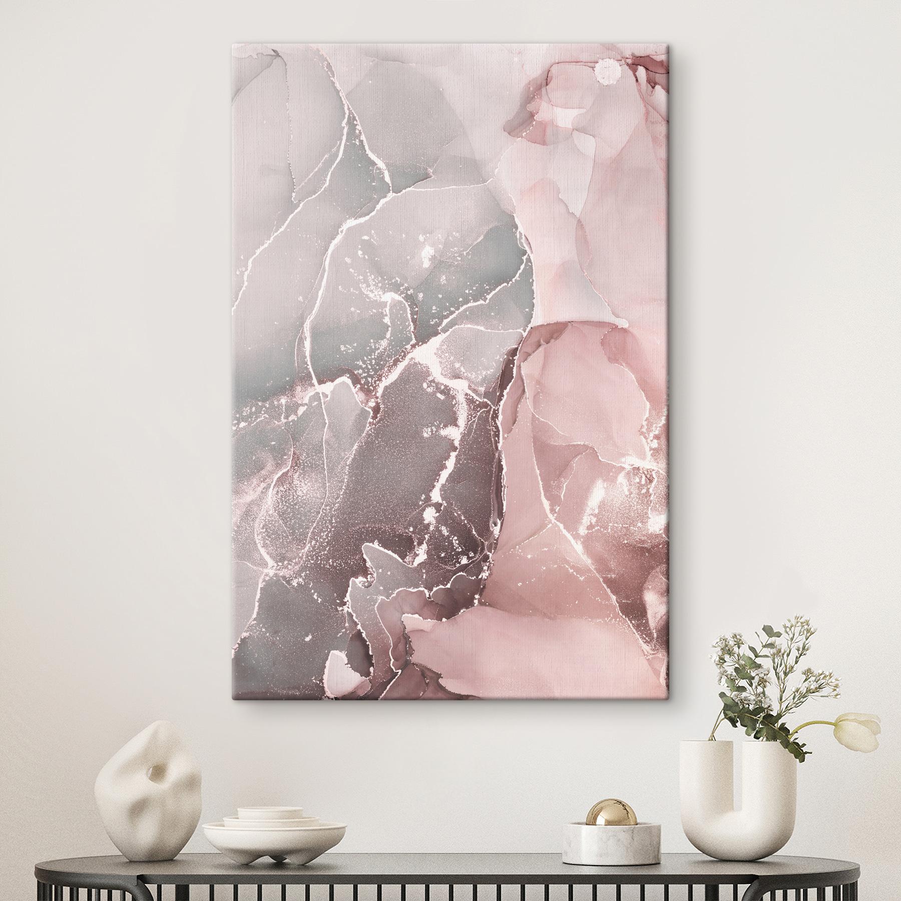 Ooit een zachte golf van rust in je woonruimte willen brengen? Deze “Abstract Pastel Marble Pattern” canvas print is precies wat je nodig hebt. Het is alsof de natuur en creativiteit een prachtige aquarelbaby hebben gekregen! De wervelende pastelkleuren – zacht roze, rokerig grijs en zacht wit – vloeien samen in een dans die zowel rustgevend als intrigerend is.