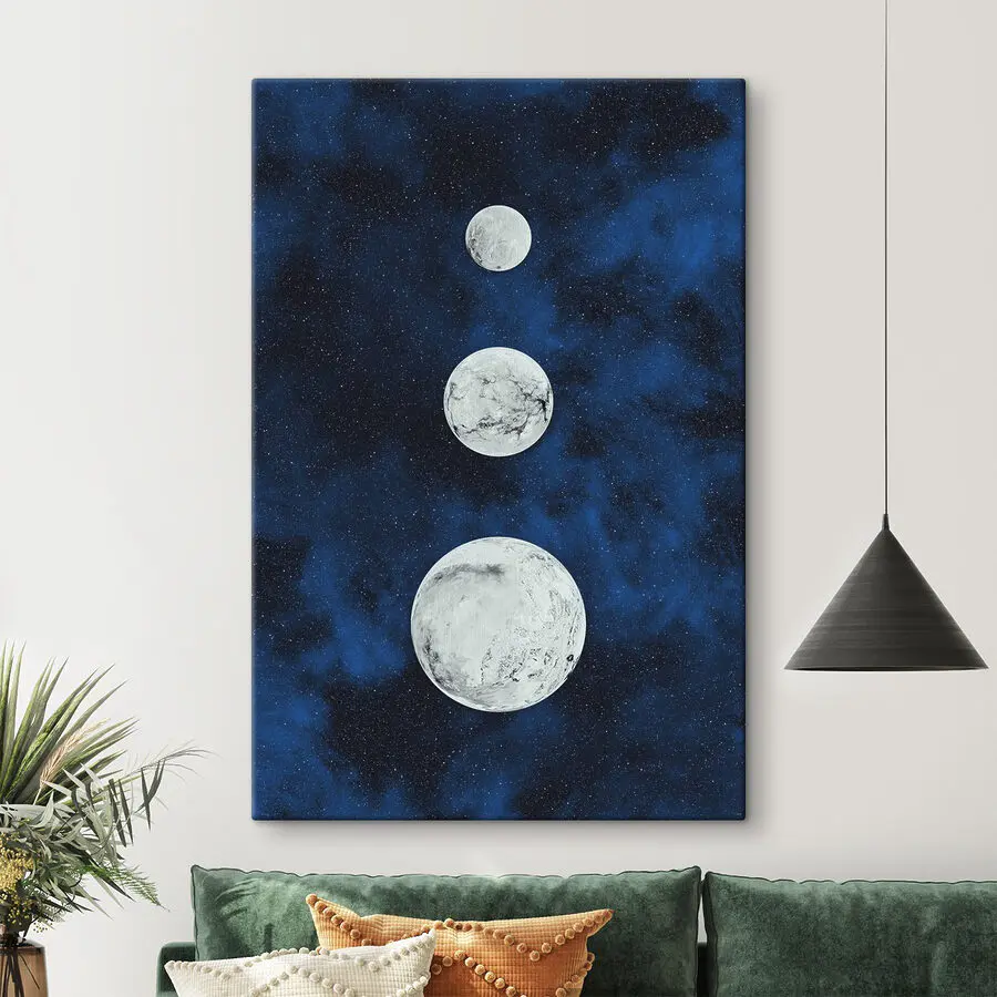 Ooit gedroomd van zweven in de ruimte? Deze canvasprint, “Group of White Round Objects in Space”, voelt als een kleine liefdesbrief aan de kosmos. Stel je voor dat je wakker wordt met dit aan je muur. Het is alsof je je eigen persoonlijke planetarium hebt! Het diepe blauw en het strakke wit creëren een serene sfeer die perfect is om bij weg te dromen. Het is niet zomaar kunst; het is een portaal naar een andere wereld. Vrienden komen misschien op bezoek en vragen zich af of ze net een sci-fi filmscène zijn binnengestapt. Wie heeft er een ruimteschip nodig als je deze schoonheid hebt hangen? Voel het wonder, laat het je verbeelding prikkelen, elke dag weer.