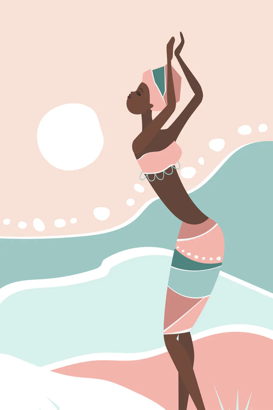 Maak kennis met “Woman in a Bathing Suit” – een canvasprint die net zo verfrissend is als een zeebriesje. Dit stijlvolle stuk combineert elementen van minimalistische en natuurkunst en vangt de energie en vrijheid van een zonnige dag aan het strand. Stel je voor dat dit in je woonkamer hangt; het zou je het gevoel kunnen geven dat je zelfs in hartje winter zonnestralen vangt! De zachte pasteltinten? Ze fluisteren rust uit. En wie heeft er geen behoefte aan een vleugje rust? Het is alsof je je eigen stukje strandparadijs in huis haalt. Perfect om een relaxte, vrolijke stemming te creëren.