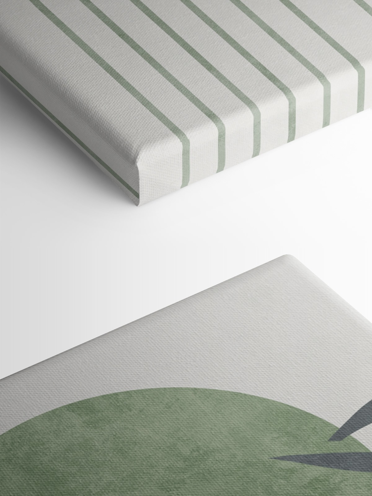 Stel je voor: je zit in je favoriete knusse hoekje en daar is deze canvasprint met groene en witte strepen. Het voelt een beetje als een ontsnapping naar een toevluchtsoord in het bos, toch? De zachtheid van het groen is rustgevend als een zacht briesje dat gewoon, je weet wel, kalmte fluistert. Het heeft een boho vibe die perfect past bij je eclectische kunstcollectie of die een minimalistische ruimte nieuw leven inblaast. Stel je de zon voor die door de jaloezieën schijnt en zachte schaduwen werpt op die sierlijke strepen. Je zult het moeilijk vinden om niet te glimlachen elke keer als je langsloopt. Het is de perfecte mix van rust en koelte, alsof het gemaakt is om aan je muur te hangen. En wie houdt er nu niet van om een vleugje op de natuur geïnspireerde zen aan zijn ruimte toe te voegen?