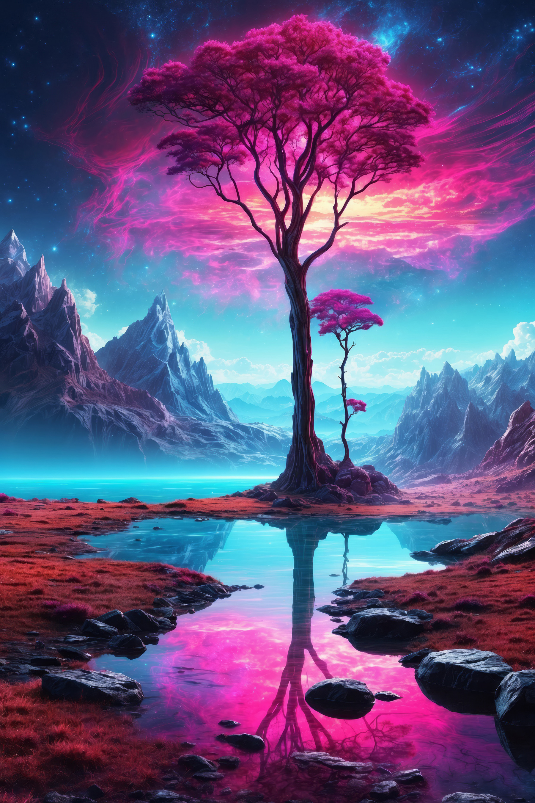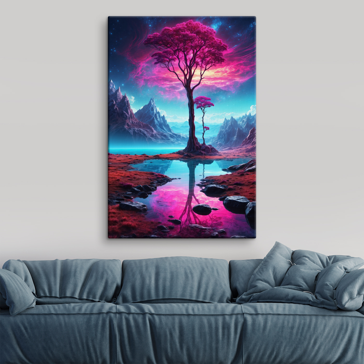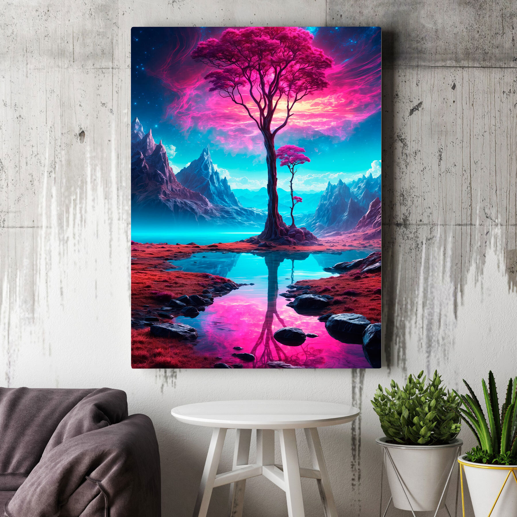 Deze prachtige canvasprint, “Tree with a Pink Flower Growing on It”, is pure magie voor je muren. Het is alsof je een droom binnenstapt, toch? Je hebt deze majestueuze boom met felroze bloesems – het is bijna alsof je de zoetheid in de lucht kunt ruiken. Stel je voor dat dit in je woonkamer hangt; elke keer als je er even naar kijkt, word je meegevoerd naar dit grillige, buitenaardse landschap. De levendige kleuren en het serene tafereel voegen een vleugje natuurflair en een dosis rust toe aan je kamer. Perfect voor iedereen die houdt van een vleugje levendige schoonheid gemengd met de rust van de natuur. Bovendien is het zo betoverend dat gasten niet zullen stoppen met vragen waar je het vandaan hebt. Het is meer dan alleen muurkunst – het is een ervaring.