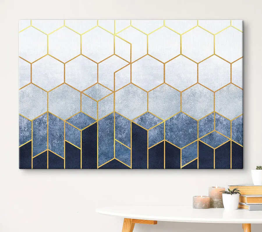 Stel je voor dat deze schoonheid aan je muur hangt-“Canvas Schilderijen Blue and White Hexagons Pattern” voegt een vleugje chique geometrie toe aan elke kamer. Die zeshoeken! Ze voelen aan als een wandeling door een moderne kunstgalerie, met een rustgevende blauw-witte sfeer die elegantie uitstraalt. Verfraai je ruimte, of het nu je technische kantoor is of een gezellig hoekje. Dit is niet zomaar een print; het is een conversatiestarter. Gasten zullen er misschien een blik op werpen of hem zelfs aanraken (beleefd natuurlijk). Voel de rust, geniet van de charme. Perfect imperfect, net als je favoriete praatje.