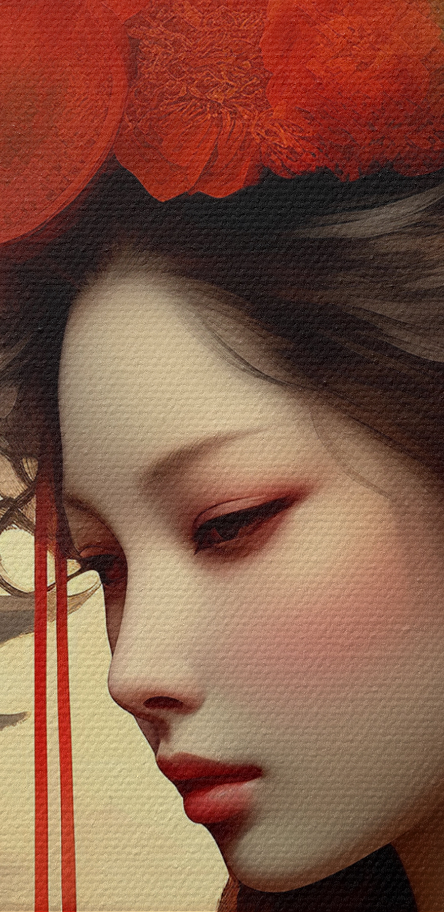 Stel je voor: je loopt je woonkamer binnen en bam! Je ogen komen terecht op dit prachtige canvas van een vrouw met lang, wapperend haar, versierd met rode bloemen. Het is alsof ze deel uitmaakt van een betoverend verhaal en je kunt niet anders dan verdwalen in de details. Perfect voor mensen die houden van een vleugje Japanse elegantie in hun inrichting. De mix van traditionele sfeer en levendige kleuren – vooral de rode – brengt een warme, betoverende sfeer in elke ruimte. Het is meer dan alleen muurkunst; het is alsof je een stukje van een droom hebt. Stel je voor dat je met een kopje thee zit, er naar kijkt en een golf van rust en inspiratie voelt. Perfect voor een gezellig leeshoekje of zelfs een opvallend statement in je entree. Geloof me, mensen zullen naar je fantastische smaak vragen!