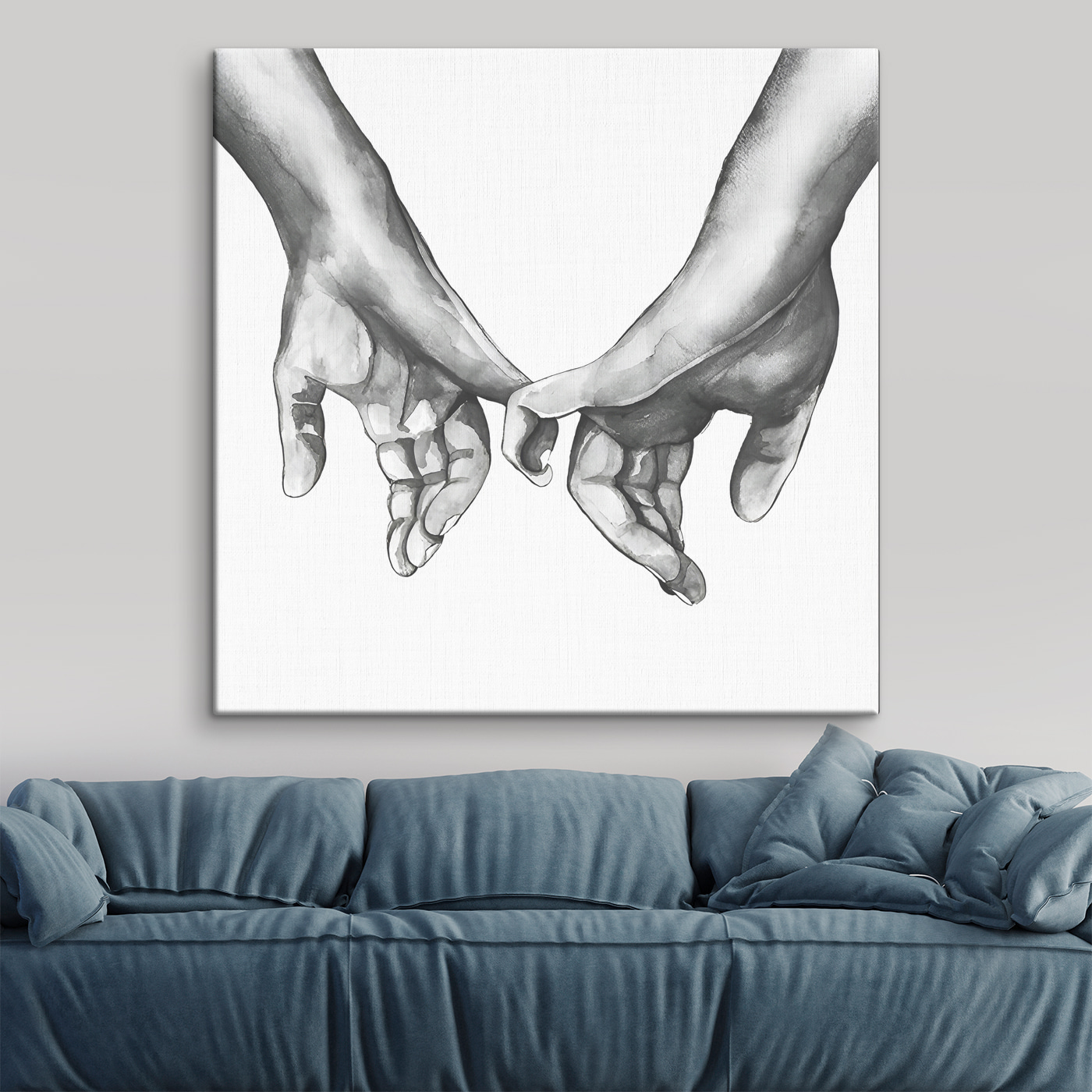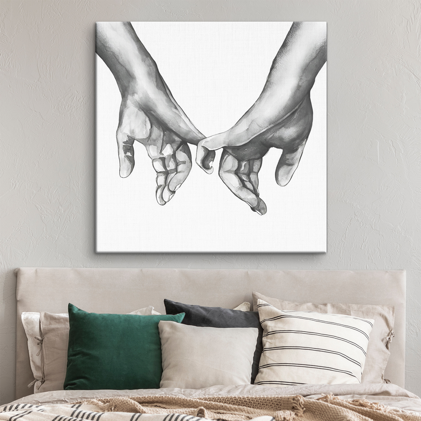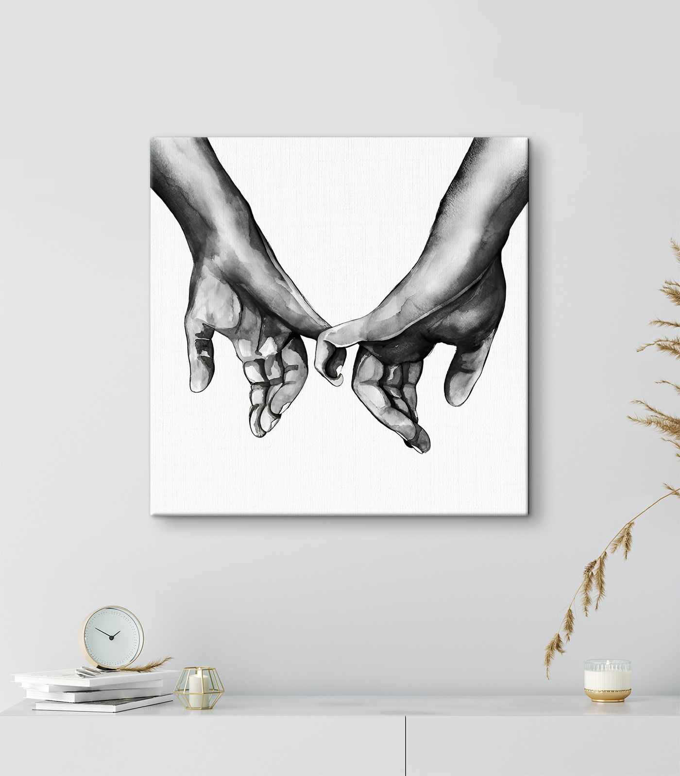 Canvas Schilderijen Canvas Schilderijen Tekening van twee handen die elkaar vasthouden (SKU: s36848)