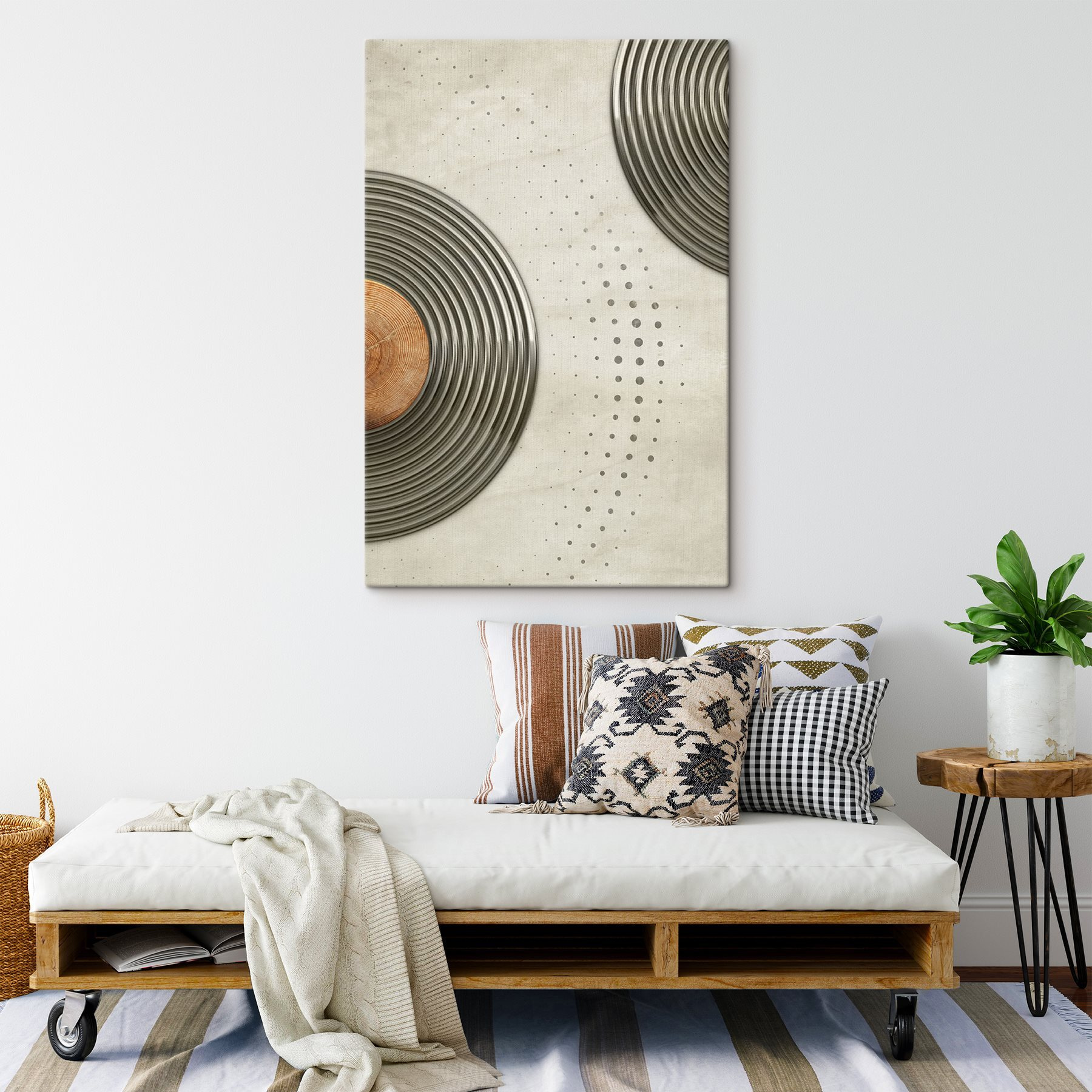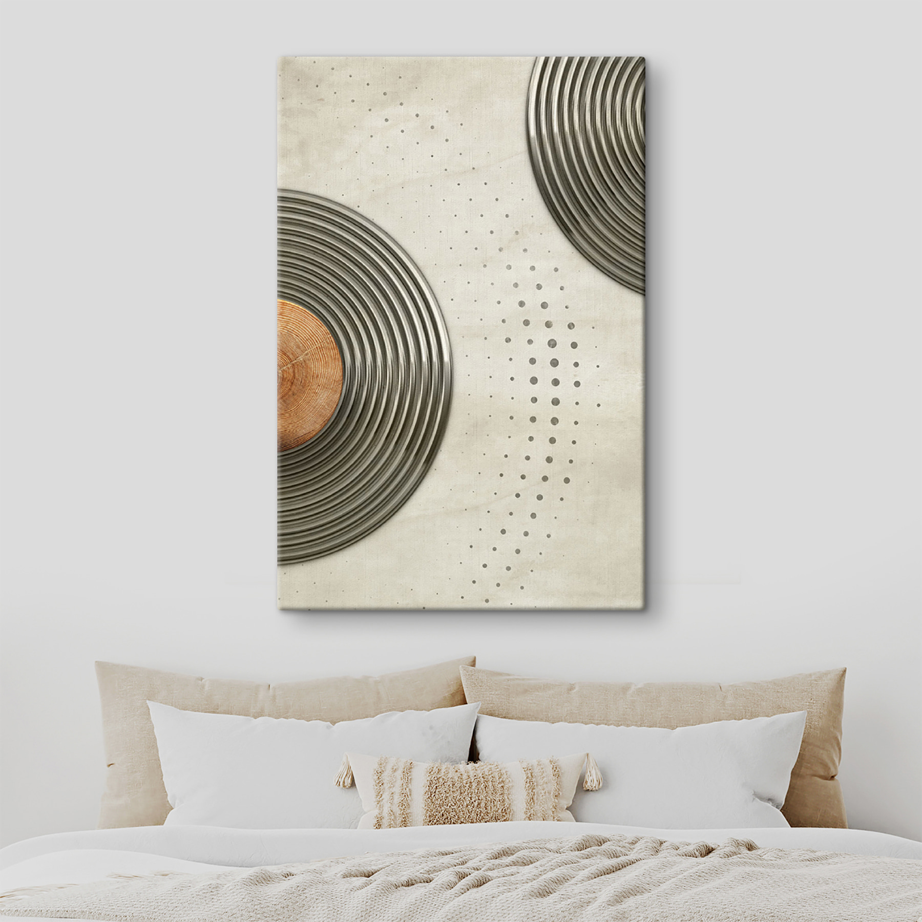 Verander elke muur in een conversatiestarter met deze canvasprint met een dynamisch cirkelvormig ontwerp. Het is net een dansfeest voor je muur: eindeloze wervelingen en speelse patronen die de aandacht trekken! Zie het voor je in een gezellige loft of een trendy café; het zal zeker vreugde en inspiratie oproepen. De subtiele tinten zijn een lust voor het oog, waardoor het de perfecte achtergrond is voor dat ochtendlijke koffieritueel of een gezellig samenzijn met vrienden. Wie houdt er nu niet van een kunstwerk dat zowel modern als uitnodigend aanvoelt? Het is kunst die fluistert, “blijf nog even”.