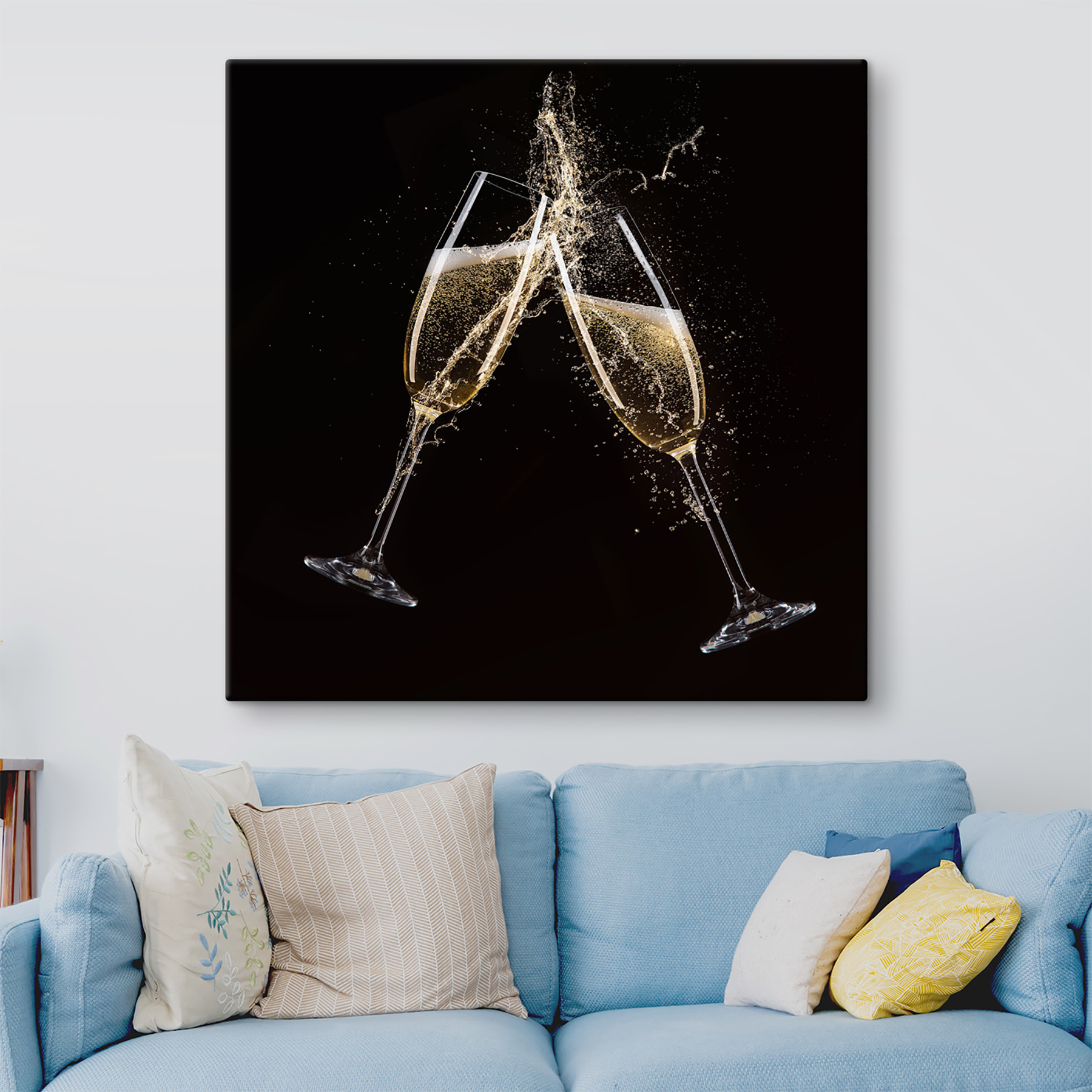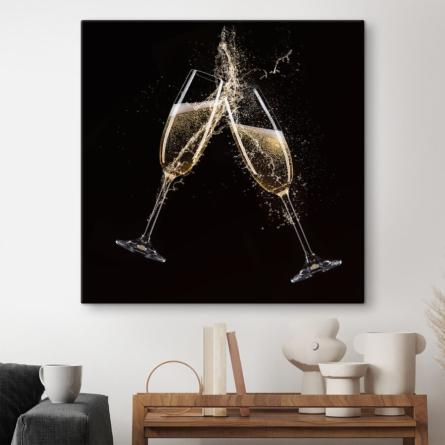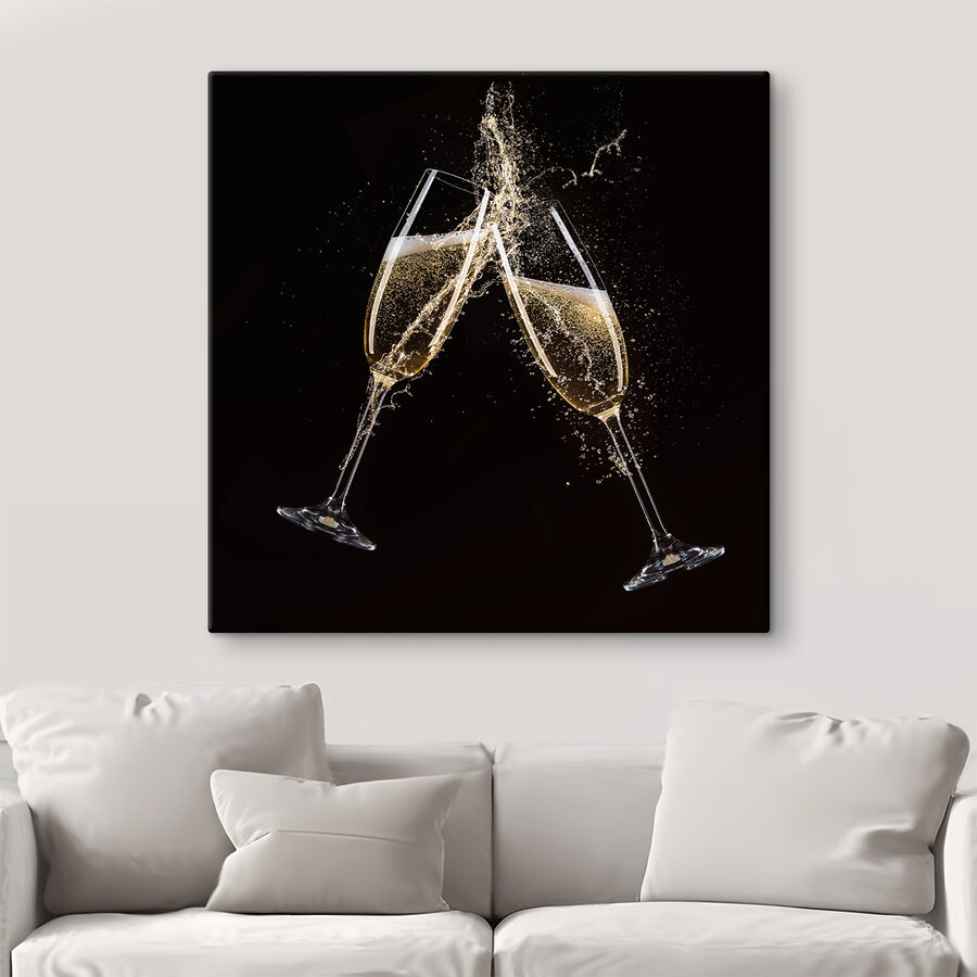 Hef het glas op stijl met deze levendige canvasafdruk met champagneglazen in het midden van de toast, die dat feestelijke spetterende moment perfect vastlegt. Telkens als je langsloopt, lijkt het alsof je het gelach van een lang vervlogen feest hoort weerklinken, of misschien kun je zelfs de bruisende lucht voelen. Als je dit werk in je keuken of woonkamer plaatst, geeft het een leuke touch die een gesprek op gang brengt – wie houdt er niet van een goed toastverhaal? De levendige beelden vullen de kamer met energie, waardoor elke dag een beetje specialer aanvoelt, zelfs als je gewoon geniet van een gezellig avondje thuis. Proost op kunst die danst!