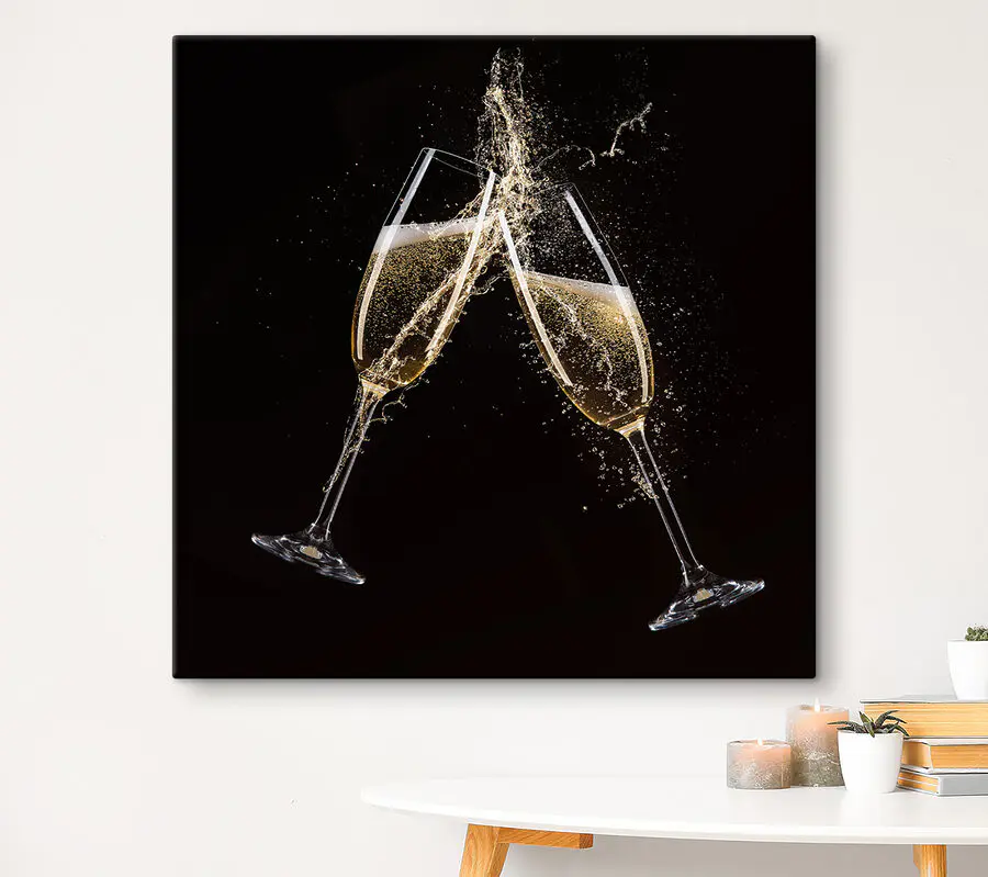 Hef het glas op stijl met deze levendige canvasafdruk met champagneglazen in het midden van de toast, die dat feestelijke spetterende moment perfect vastlegt. Telkens als je langsloopt, lijkt het alsof je het gelach van een lang vervlogen feest hoort weerklinken, of misschien kun je zelfs de bruisende lucht voelen. Als je dit werk in je keuken of woonkamer plaatst, geeft het een leuke touch die een gesprek op gang brengt – wie houdt er niet van een goed toastverhaal? De levendige beelden vullen de kamer met energie, waardoor elke dag een beetje specialer aanvoelt, zelfs als je gewoon geniet van een gezellig avondje thuis. Proost op kunst die danst!