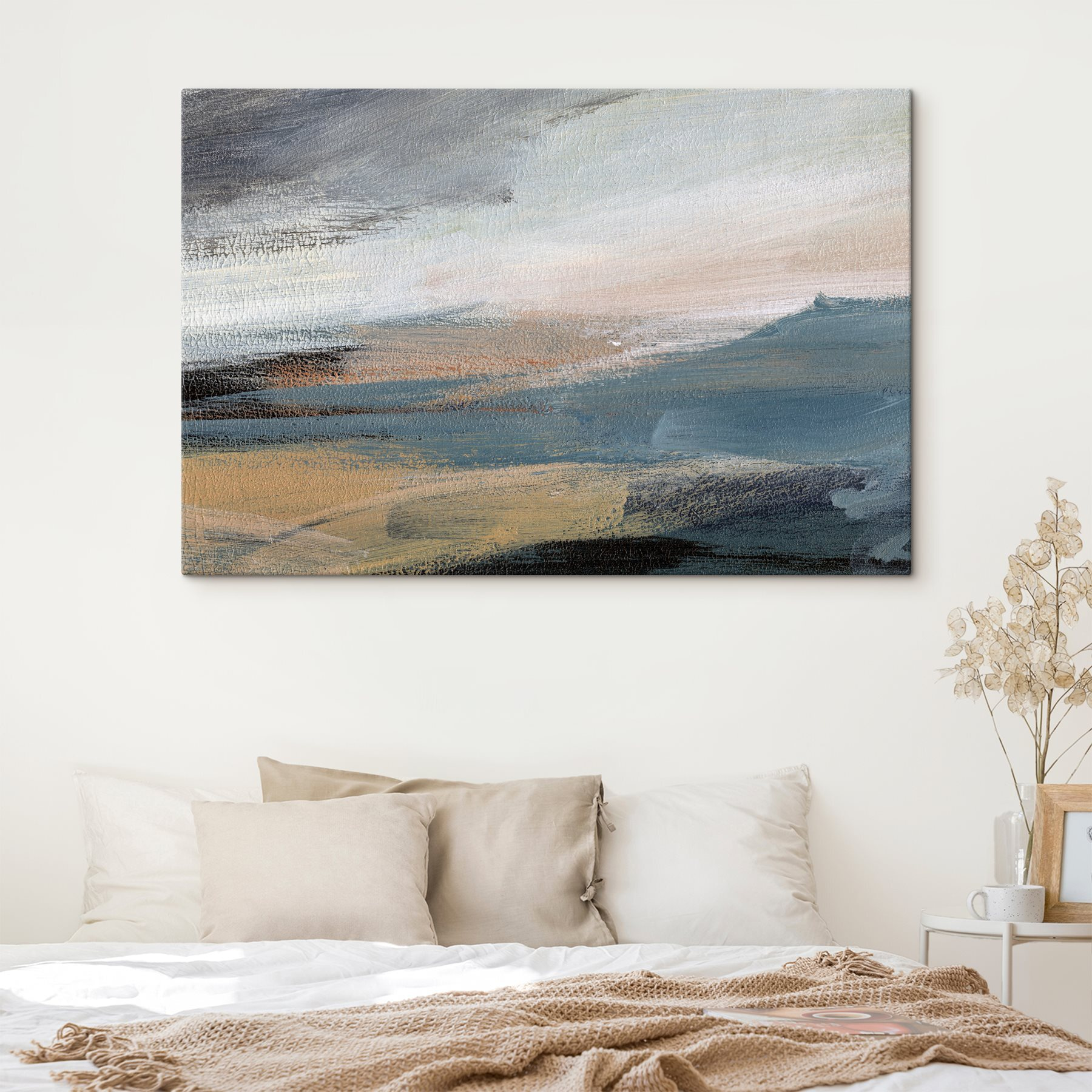 Verander elke muur in een conversatiestarter met deze unieke canvasprint met een abstract landschap dat zowel sereen als inspirerend aanvoelt. Stel je voor dat je ervoor staat, verdwaald in die zachte penseelstreken – een mix van aardse tinten die door elkaar dwarrelen als een gezellige herfstdag. Perfect voor een woonkamer, het nodigt uit tot warmte en creativiteit. Vrienden kunnen samen met jou dagdromen. Het is alsof je een stukje natuur in je kamer hebt, zonder de insecten. Laat dit kunstwerk vreugde en reislust opwekken terwijl het je inrichting een frisse draai geeft.
