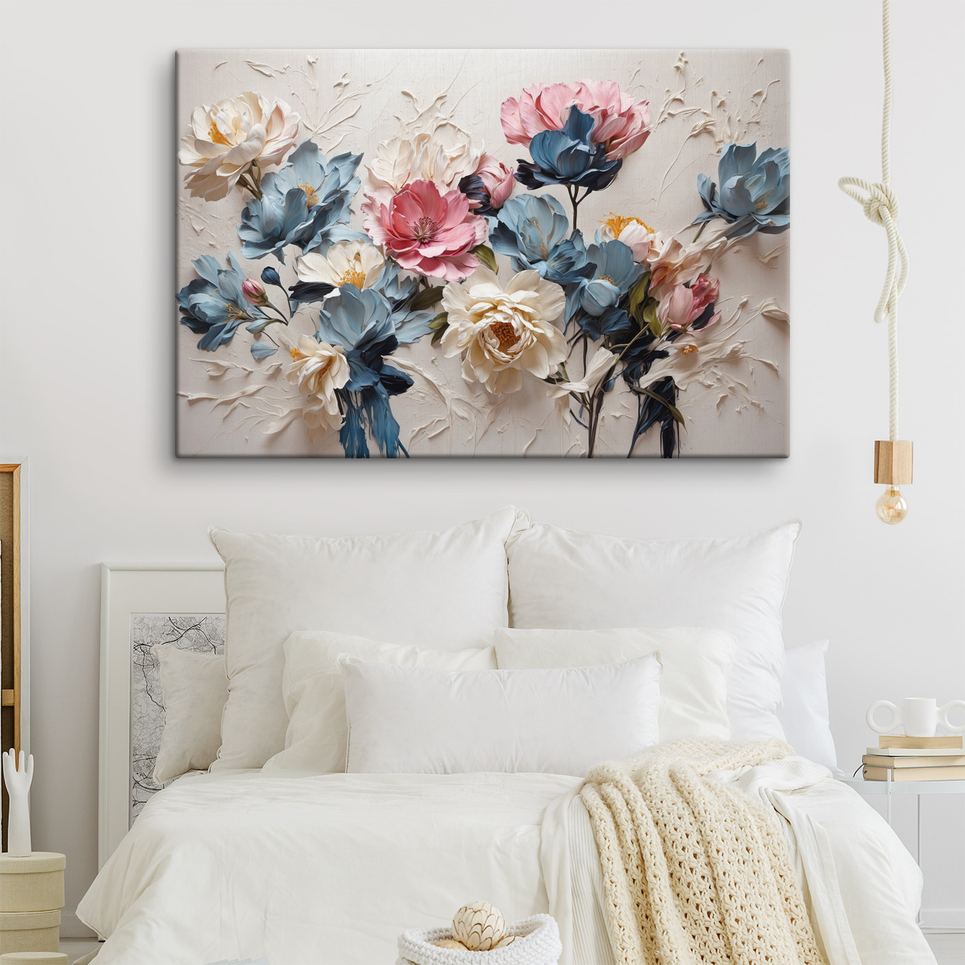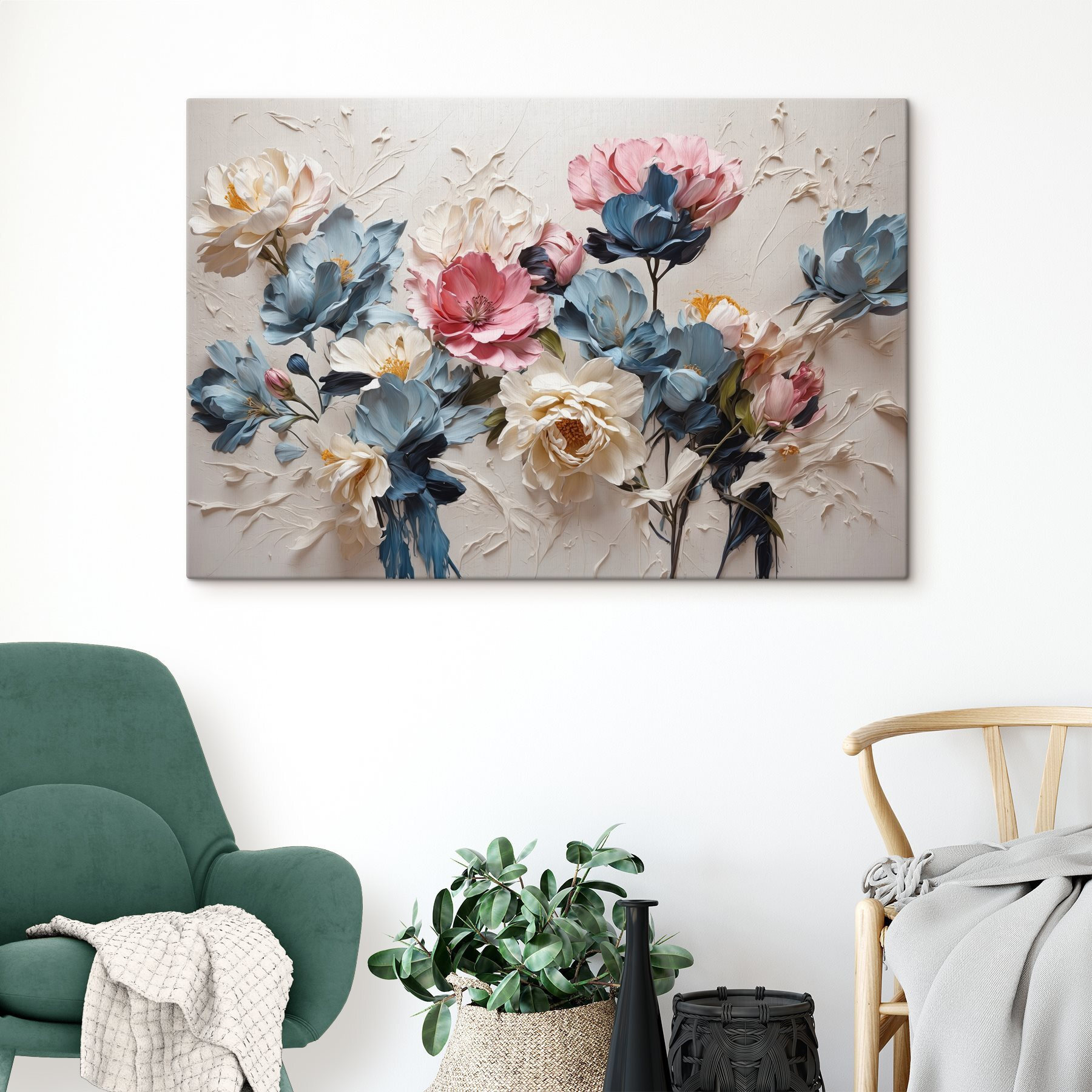 Geef elke kamer een frisse wind met deze levendige canvasprint met pastelkleurige bloemen die bijna van de muur springen. Stel je voor dat je binnenkomt en begroet wordt door zacht roze en koel blauw, als een zachte knuffel van een lentemorgen. Het is niet zomaar kunst aan de muur; het is een sfeermaker die fluistert: “Vergeet niet even aan de rozen te ruiken” – of in dit geval, pioenrozen en tulpen! Perfect voor een knus hoekje of een levendige leefruimte, dit stuk brengt een vleugje kleur en vreugde, waardoor elke blik voelt als een mini ontsnapping naar een prachtige tuin. Wie zou daar niet van houden?