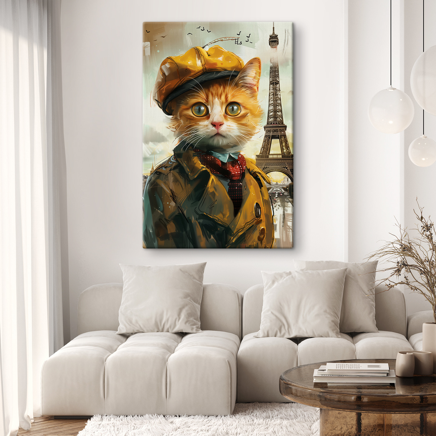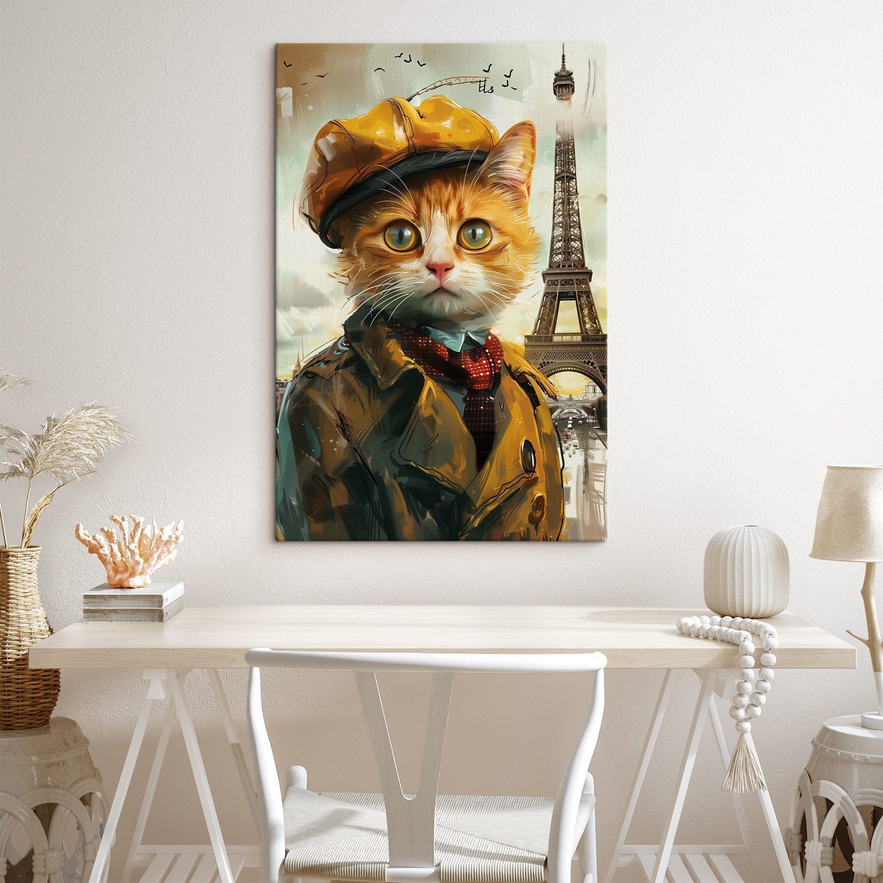 Zeg maar bonjour tegen de coolste kat in de stad van de liefde! Deze “Stylish Cat Enjoying Parisian Sights” canvas print is niet zomaar een kunstwerk, het is een vibe. Stel je deze geraffineerde kat voor, pronkend met een chique baret en sjaal, die de iconische Eiffeltoren in zich opneemt en je ruimte verandert in een droom voor kunstliefhebbers. Perfect voor kinderkamers, hoeken met een dierenthema of waar dan ook waar een vleugje grillige charme nodig is. Het is het soort kunstwerk dat je doet glimlachen telkens als je er voorbij loopt. En het zal zeker aanzetten tot leuke gesprekken. Wie wil er nu geen Parijse katachtige flair in huis?