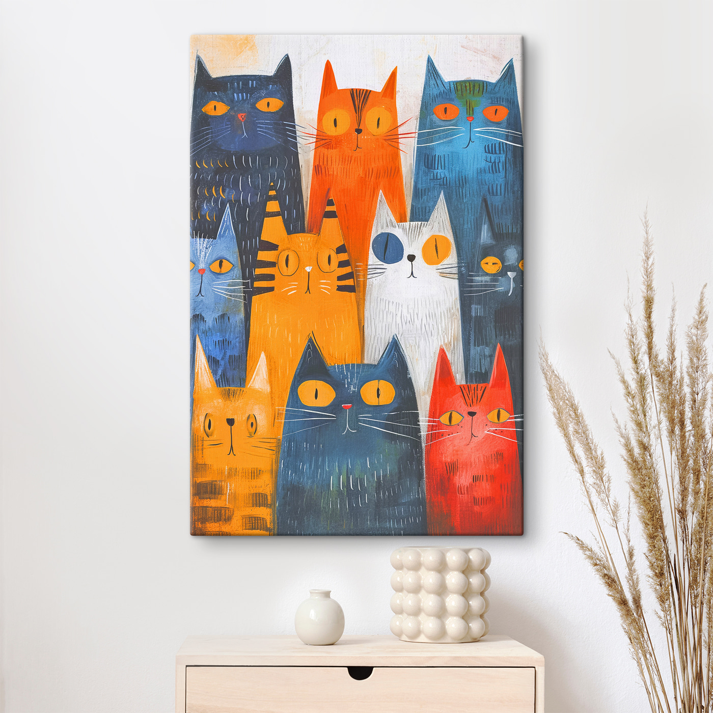 De unieke uitdrukking en levendige kleuren van elke kat brengen een vleugje vreugde en veel charme. Het is net een carnaval van katten, elk met zijn eigen verhaal en persoonlijkheid. Je zult merken dat je zelf namen en achtergronden voor ze verzint – dat is Bluey, en daar is Ginger, en oh kijk, Splotch met zijn schattige ooglapje!