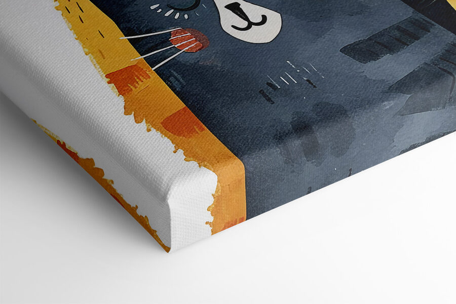 Het is geweldig om een speelse sfeer te creëren, alsof een sprookjesboek tot leven komt. Hang het op in de kinderkamer en kijk hoe snel het hun favoriet wordt! Denk aan verhaaltjes over fantastische katten voor het slapengaan. Of hang het in je woonkamer – meteen een gespreksonderwerp. “Oh, die blauwe kat? Hij heet Whisker McGee!” De kleuren zijn helder maar zacht, waardoor het huiselijk en lief aanvoelt, of je nu vijf of vijfenvijftig bent.