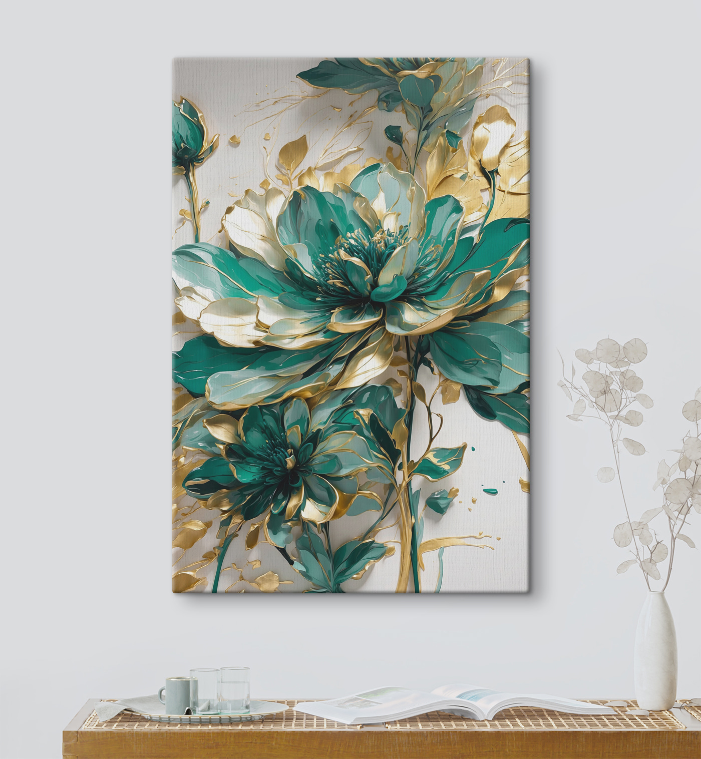 Stel je voor dat je een kamer binnenloopt en bam, daar is het, de “Emerald Flowers” canvasprint, die de show steelt alsof de kamer van hem is. Levendige bloemen en elegante accenten creëren een vrolijke sfeer die die saaie muurmomenten opfleurt. Het is alsof je het hele jaar door een vleugje lente in huis haalt. Stel je voor: gezellige avonden lachen met vrienden of nippen van een kopje koffie, en deze schoonheid die de achtergrond rustig speciaal maakt. Perfect voor een woonkamer of zelfs een hal, het is een kleine herinnering om even stil te staan en de schoonheid in het dagelijks leven te waarderen. Wie wist dat muurkunst zo levendig kon zijn?