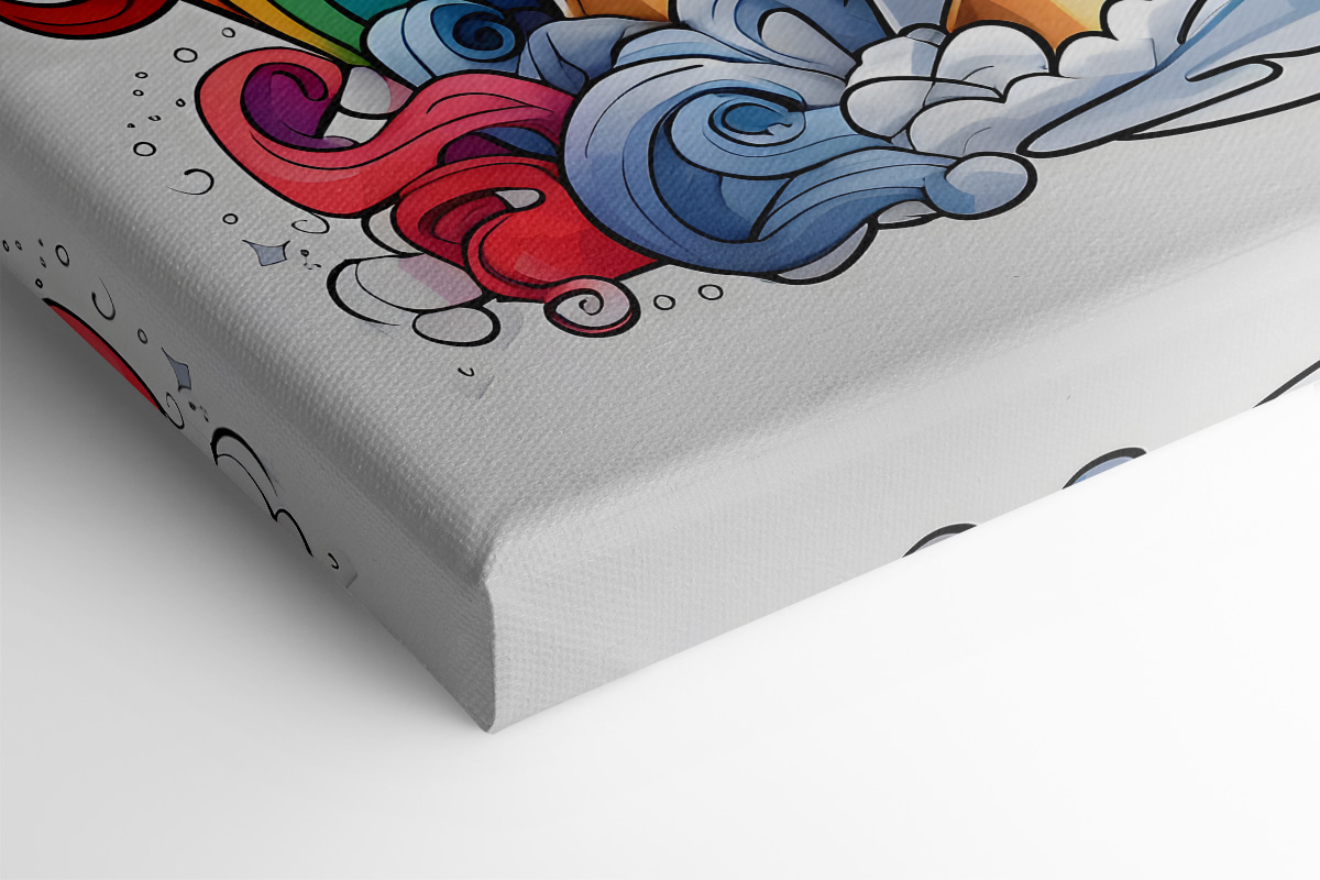 Hallo daar! Bekijk deze geweldige canvasprint: “Cartoon van een eenhoorn met regenbooghaar.” Perfect voor de kinderkamer of voor iedereen die jong van hart is. Stel je voor dat deze levendige eenhoorn met zijn dromerige haar een vleugje magie aan de muur toevoegt. Die kleuren zijn wild, toch? Ze dansen bijna van het doek af.