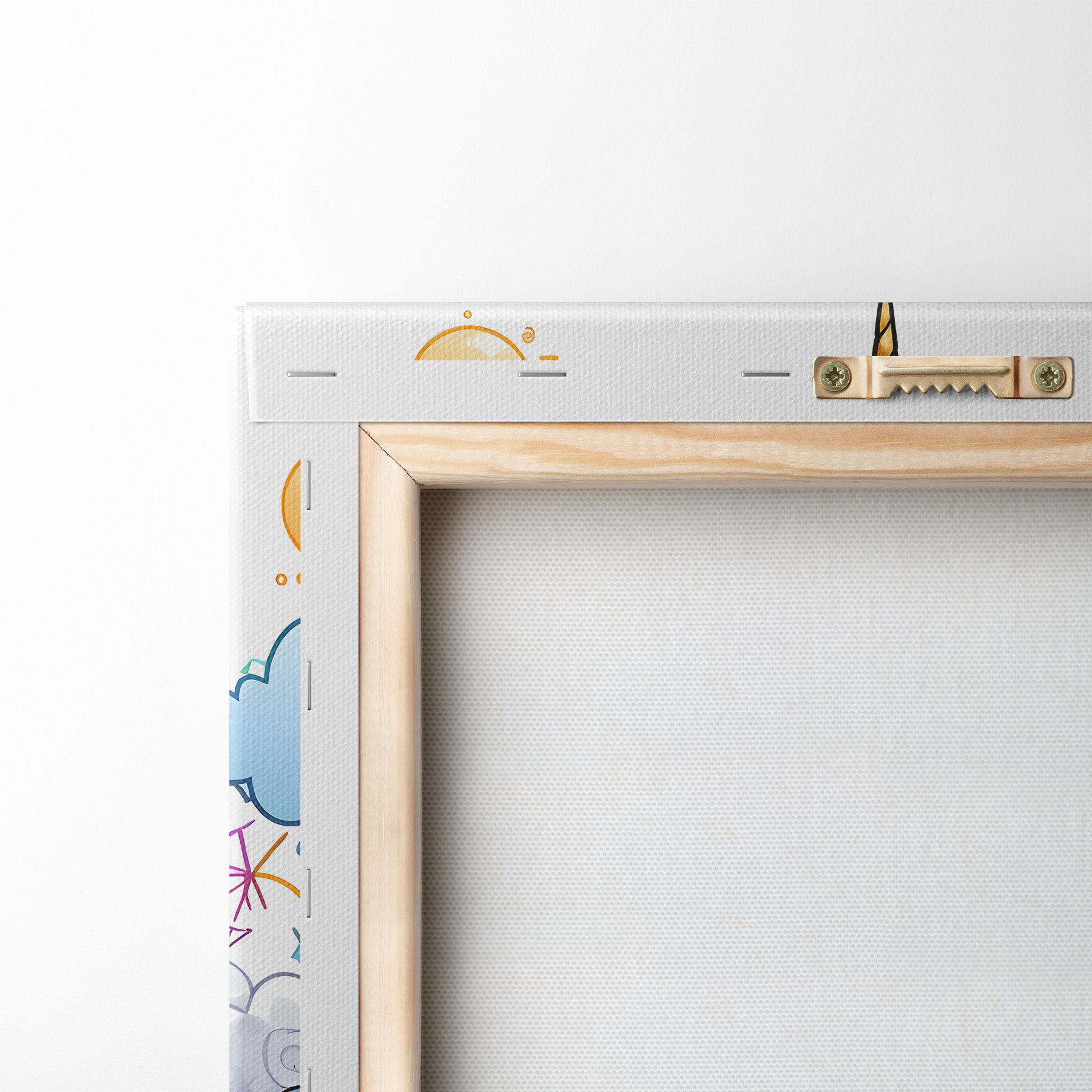 Het is geen alledaags kunstwerk; het is als een uitbarsting van vreugde en eigenzinnigheid in een frame. Perfect om een glimlach op ieders gezicht te toveren, of je er nu mee wakker wordt of het voor het slapen gaan ziet. En eerlijk gezegd, wie heeft er geen behoefte aan een dagelijkse dosis regenbogen en magie? Dit stuk schreeuwt om aanbeden te worden. Het is een vrolijke achtergrond die verhalen van fantasie en plezier fluistert.