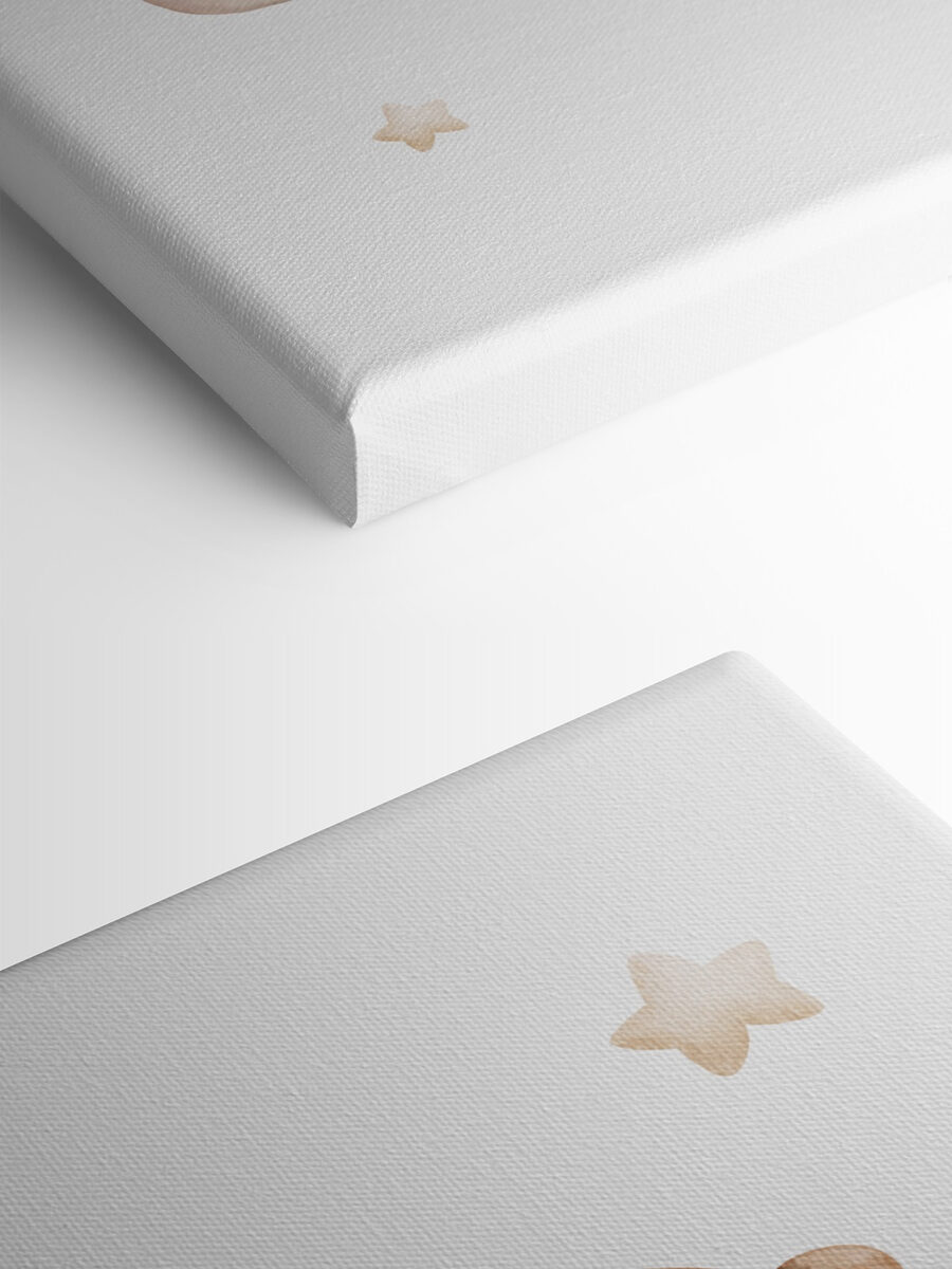 Voel je de rust al? Stel je voor dat je kind naar de teddybeer wijst voordat hij in slaap valt, met een grote glimlach op zijn gezicht. Dit kunstwerk is als een zacht slaapliedje, visueel rustgevend en oh-zo-charmant. Het is ook een heerlijke gespreksstof – iedereen zal je vragen waar je zo’n schattig kunstwerk hebt gevonden! Of je nu aan het herinrichten bent of gewoon op zoek bent naar dat speciale iets, deze canvasprint is een absolute winnaar.