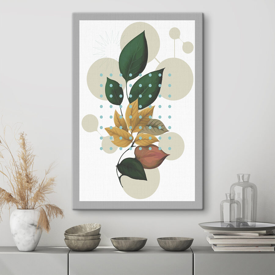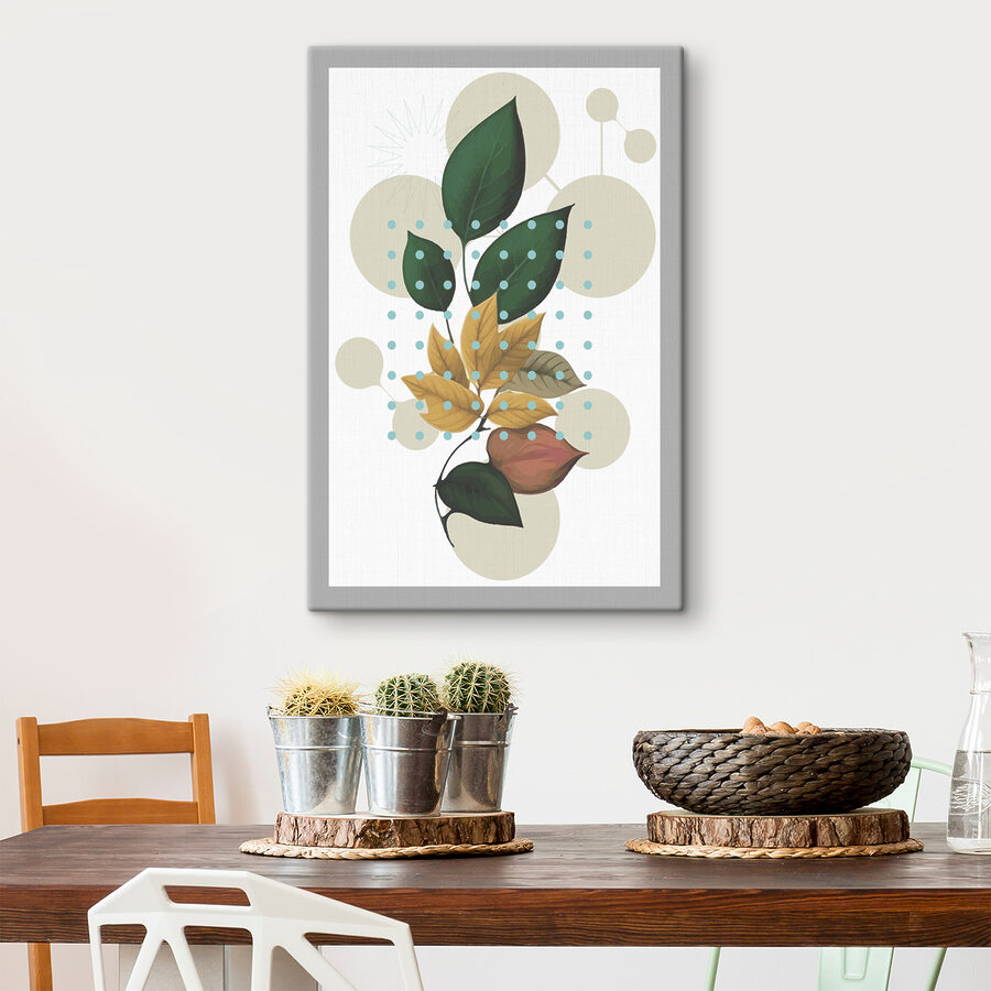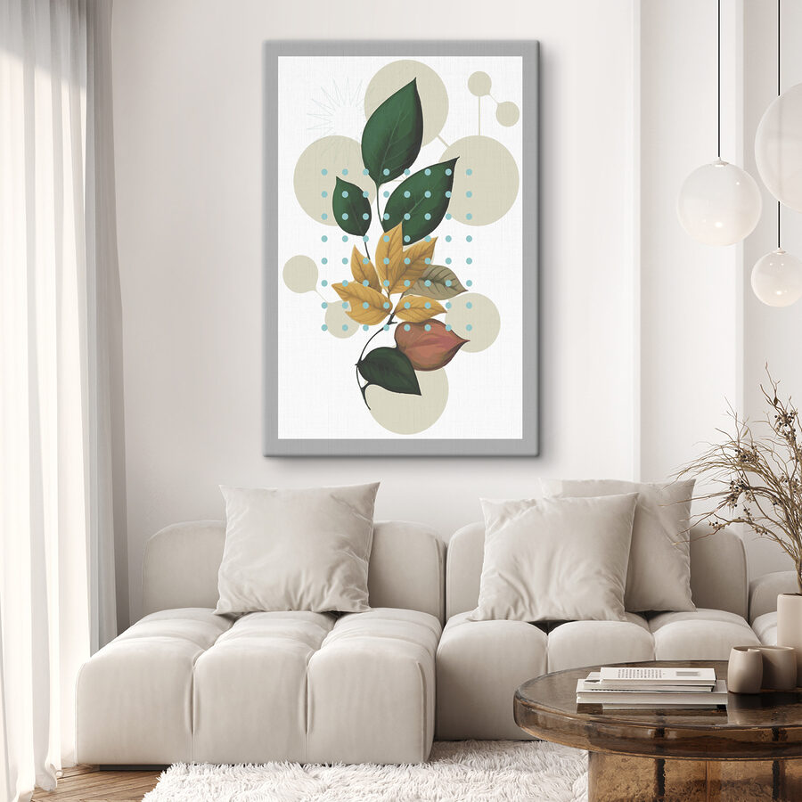 Voeg een vleugje natuur toe aan je muren met deze levendige canvasprint met bladeren versierd met speelse stippeldessins. Het is als een wandeling door een kunstzinnige tuin bij je thuis. Stel je voor dat die aardse groentinten en warme gelen een gezellig hoekje opfleuren, waardoor zelfs de maandagochtend een beetje vrolijker aanvoelt. Dit kunstwerk is perfect voor een woonkamer of kantoor en nodigt uit tot een verfrissende sfeer. Vrienden zullen zich misschien afvragen of je een geheim decoratietalent hebt. Een beetje groen kan vrolijkheid opwekken, vind je niet? Bovendien is het een geweldige gespreksstarter!