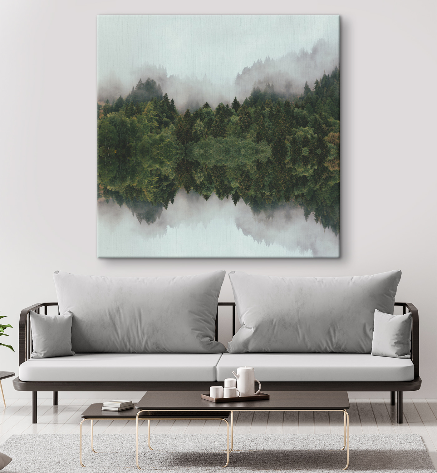 Stel je voor dat je een sereen bos binnenstapt zonder je gezellige woonkamer te verlaten. Deze canvasprint vangt de prachtige weerspiegeling van bomen in kalm water, bijna als een spiegel van de natuur. Het weelderige groen, de fluisterende bries en een vleugje mist roepen het vredige gevoel op van een wandeling door een stille vallei. Het is het perfecte stuk om een vleugje rust in elke ruimte te brengen. Stel je voor dat je koffie drinkt terwijl je naar deze schoonheid staart – het is als een mini-vakantie voor je geest. Perfect voor natuurliefhebbers of iedereen die behoefte heeft aan een zen-moment in hun inrichting. Wie zou zich hierdoor niet meer ontspannen voelen?