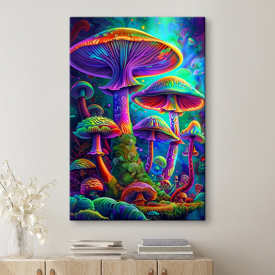 Hoe levendig zijn deze paddenstoelen? Het is alsof je een grillig, betoverd bos binnenstapt telkens als je een blik werpt op “Canvas Schilderijen Groep Kleurrijke Paddenstoelen”. Perfect voor iedereen die van kleur houdt of gewoon wat vrolijkheid in de ruimte wil. Stel je voor: je nipt van je ochtendkoffie en daar zijn ze, deze vrolijke paddenstoelen in regenboogkleuren. Vrolijkt de hele kamer en je humeur op. Zo’n fantastische mix van natuur en verbeelding. Het zou geweldig staan in een woonkamer, een gezellige leeshoek of zelfs een eigenzinnige kantoorruimte. Elke keer als iemand het ziet, zullen ze glimlachen. Zeker conversatiestof! 🌈🍄
