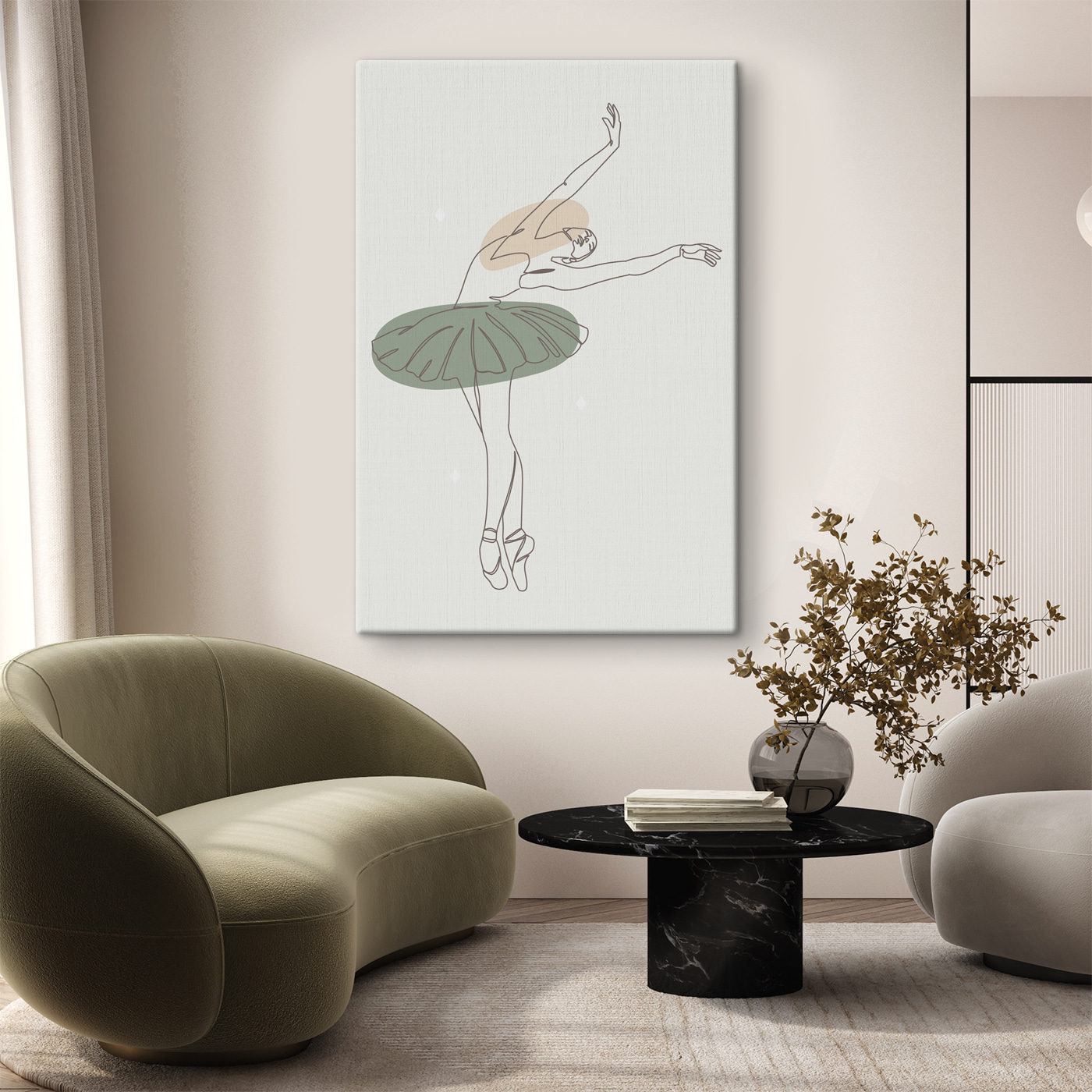 Hier is je volgende favoriete stuk muurkunst: de “Tekening van een ballerina” canvasprint! Stel je voor: een prachtige, minimalistische schets van een gracieuze ballerina, gehuld in zachte, aardse tinten die elegantie uitstralen. Perfect voor die lege plek boven de bank, vind je niet? Het is net alsof je een dansstudio in je woonkamer hebt.