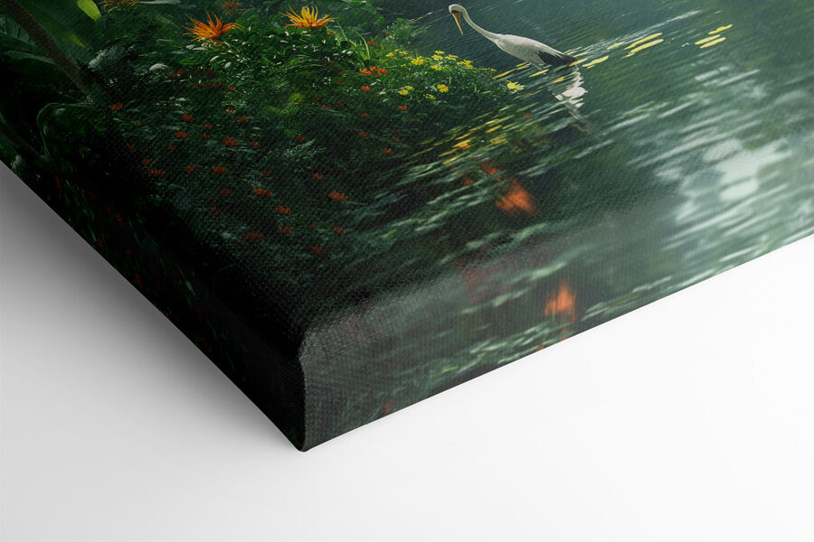 Deze canvasprint “Serene Jungle Rivier met Reiger” verandert elke kamer in een oase van rust. Het is alsof je vanuit je luie stoel een minivakantie neemt in een weelderig bos. Stel je voor dat je naar een rustgevende rivier staart, omgeven door levendig groen, met een sierlijke reiger die elegant in het water staat. Je kunt het zachte geritsel van de bladeren en het zachte stromen van de beek bijna horen. Perfect voor natuurliefhebbers en iedereen die hunkert naar een stukje paradijs in hun kamer. Het is gegarandeerd een gespreksstarter. Hang dit op in je woonkamer, kantoor of zelfs slaapkamer en zie hoe het een gevoel van rust en vreugde brengt. Bovendien is het altijd leuk om een reiger als gezelschap te hebben, toch?