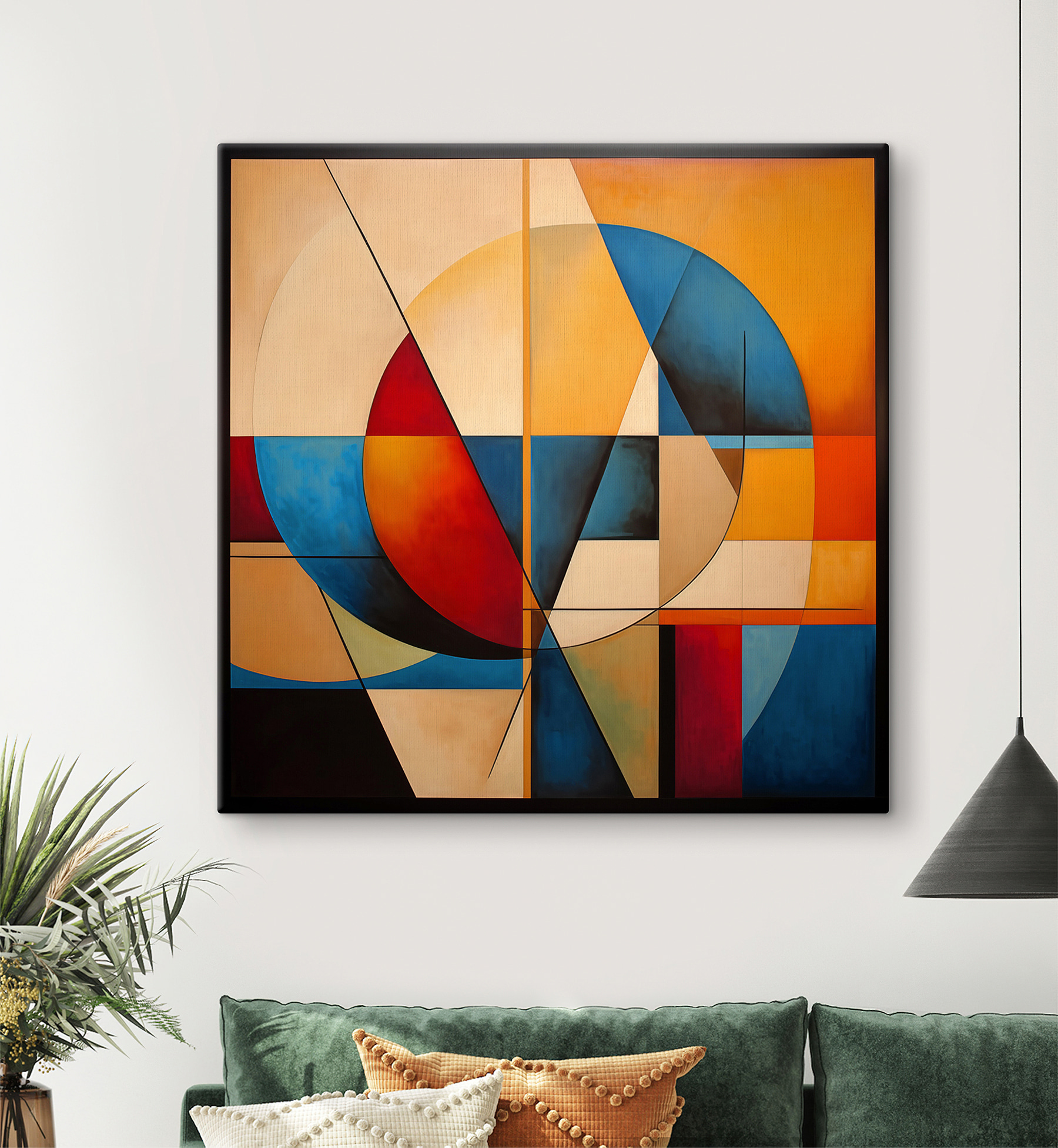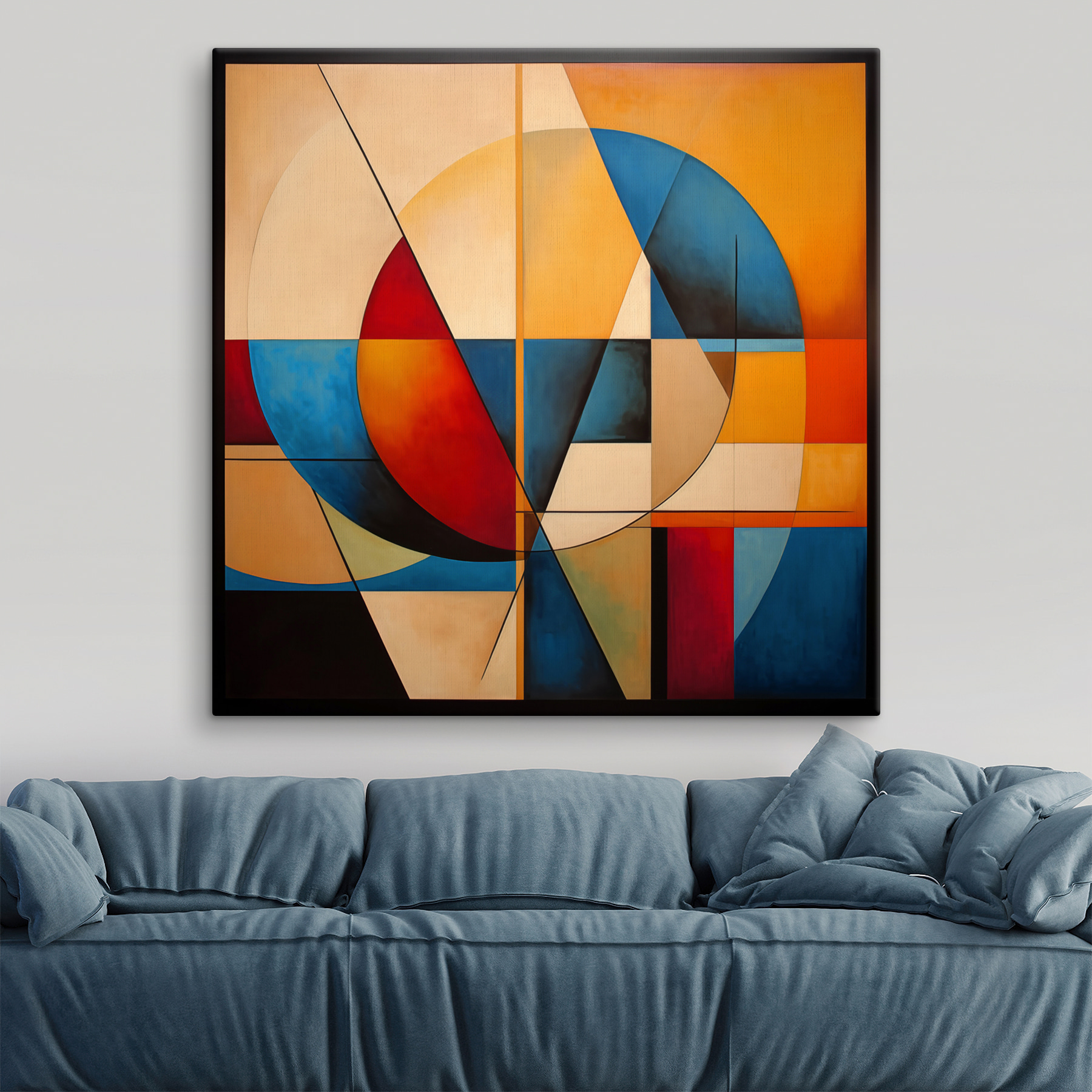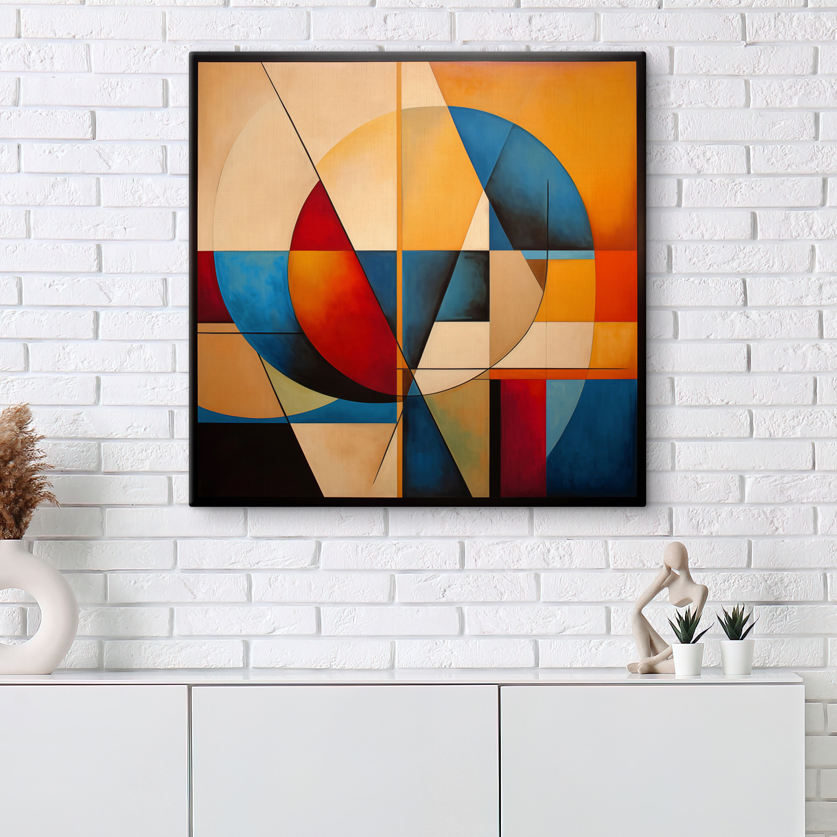 Heb je je ooit afgevraagd hoe een eenvoudige cirkel zo fascinerend kan zijn? Dit “Schilderij op canvas van een cirkel en een cirkel” is perfect voor iedereen die van een abstract tintje houdt. De mix van levendige roodtinten, kalmerend blauw en zonnig geel in geometrische vormen – het is als een visuele dans op je muur.