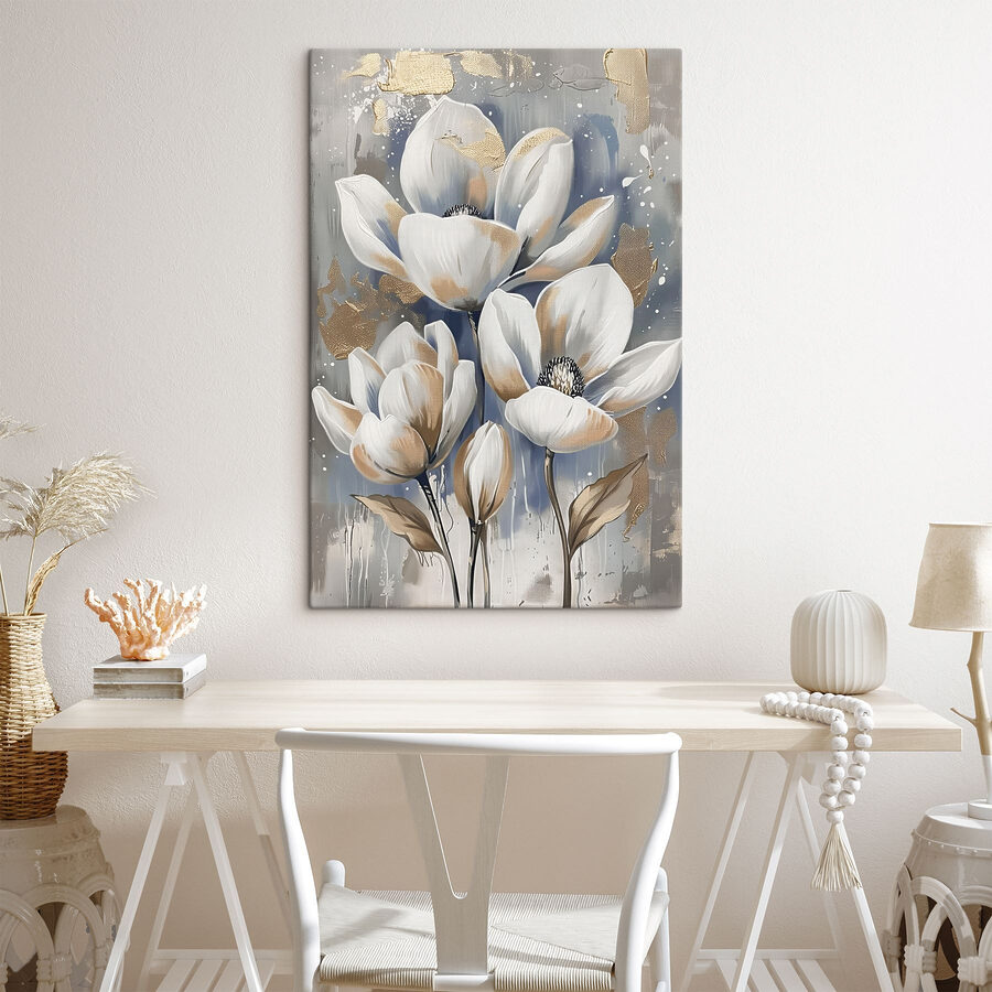 Fleur elke muur op met deze charmante canvasprint met een boeket delicate bloemen. Het zachte wit en de warme tinten zorgen voor een frisse wind in je interieur – zie het als een stukje natuur dat bij je thuis hangt. Stel je voor dat je lekker gaat zitten met een goed boek, een blik omhoog werpt en je laat meevoeren door de bloemen. Het is alsof je een minituintje hebt dat nooit verwelkt! Perfect om een rustige sfeer te brengen in een woonkamer, slaapkamer of zelfs een kantoor aan huis. Wie wist dat decoraties zo’n serene, bloemrijke vreugde konden uitstralen?