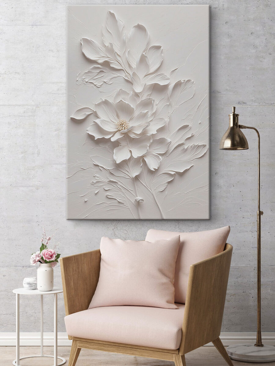 Deze canvasprint, getiteld “Delicate White Floral Design Artwork”, is een prachtige aanwinst voor elke ruimte. Stel het je eens voor in je woonkamer – die zachte, ingewikkelde bloemen lijken bijna van het doek af te bloeien! Het heeft een serene, elegante uitstraling waardoor de hele kamer op de een of andere manier vrediger aanvoelt. Perfect voor als je een moment van zen wilt. Het is geweldig voor natuurliefhebbers en iedereen die van mooie kunst houdt. Je zult merken dat je er gewoon naar staart en je afvraagt hoe zoiets simpels zo fascinerend kan zijn. Of je nu een doorgewinterde kunstverzamelaar bent of gewoon iemand die van schoonheid houdt, dit kunstwerk heeft de gave om elke dag een beetje mooier te maken. Bovendien is het veelzijdig – het past in elke interieurstijl zonder de aandacht te stelen, net als de zelfverzekerde beste vriend die we allemaal nodig hebben.
