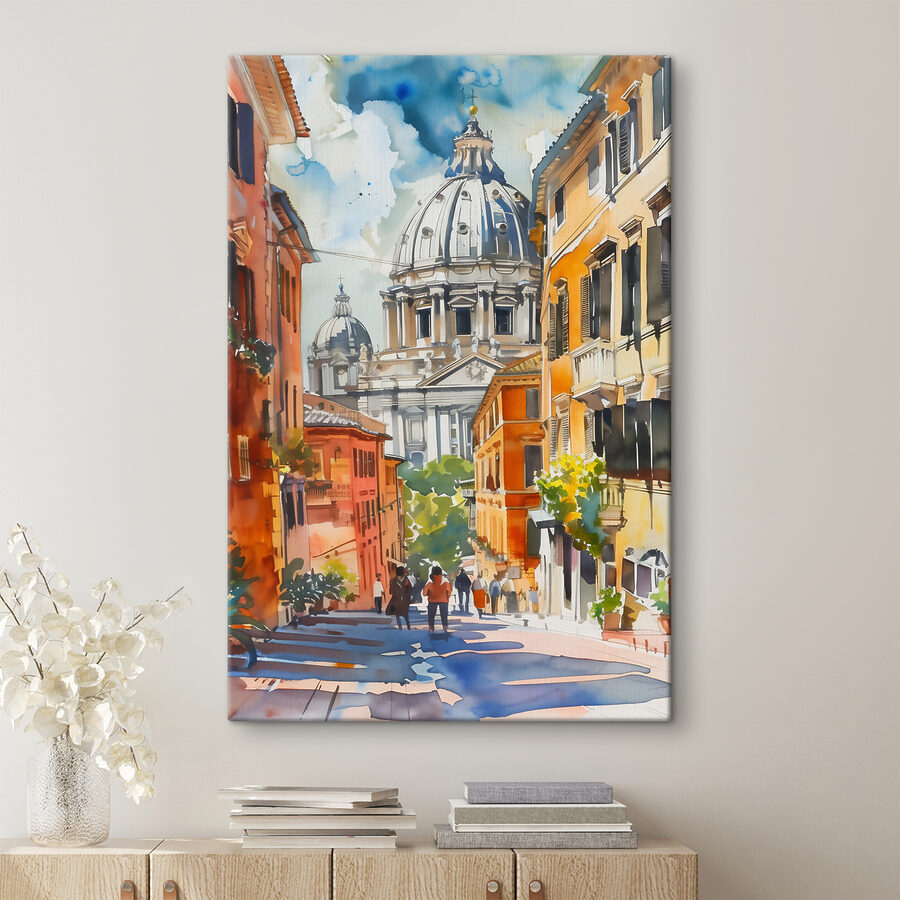 Dit rijkgekleurde stuk vangt de charme van een klassieke stad – denk aan kronkelende straatjes, warm licht en gefluisterde geschiedenis. Er is een dromerige, aquarelachtige toets die bijna aanvoelt als een dierbare herinnering… misschien een avontuurlijke zomer zwervend door Europese steegjes? Het is precies wat je nodig hebt om dat “je ne sais quoi” toe te voegen aan elke ruimte.