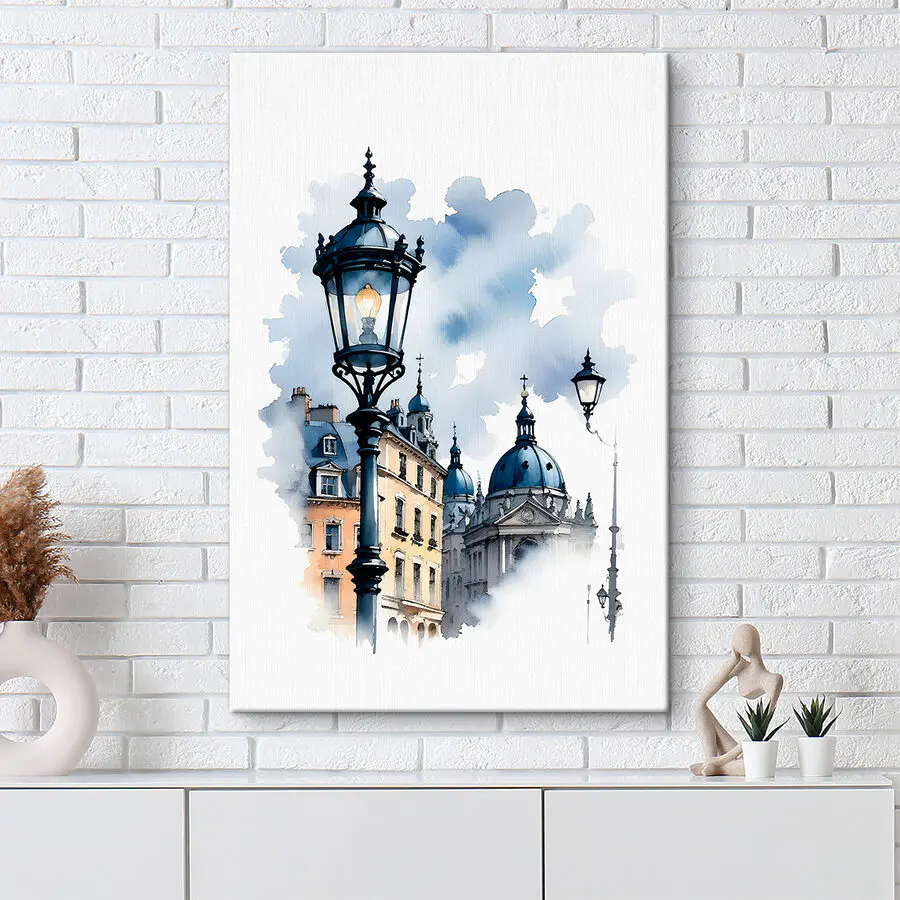 Je zult dol zijn op deze canvasprint van “Straatlantaarns en koepel onder blauwe hemel”. Stel je voor: je hebt deze charmante ouderwetse straatlantaarns en een majestueuze koepel tegen een perfect blauwe lucht – het voelt een beetje als een scène uit een oude Europese stad, toch? Het is als een frisse wind voor je muren. Stel je voor dat je elke dag wakker wordt met dit uitzicht. Het is alsof je door een historische stad wandelt zonder je huis te verlaten. De aquarel sfeer maakt het nog dromeriger en voegt die zachte, kunstzinnige touch toe aan je ruimte. Of je nu van architectuur of kunst houdt of gewoon van iets unieks, dit stuk is een schot in de roos. Het heeft die tijdloze aantrekkingskracht die in elke kamer past. Stel je dit eens voor in je woonkamer of kantoor – het zal de sfeer totaal veranderen. Echt, het is als een kleine ontsnapping op een canvas.